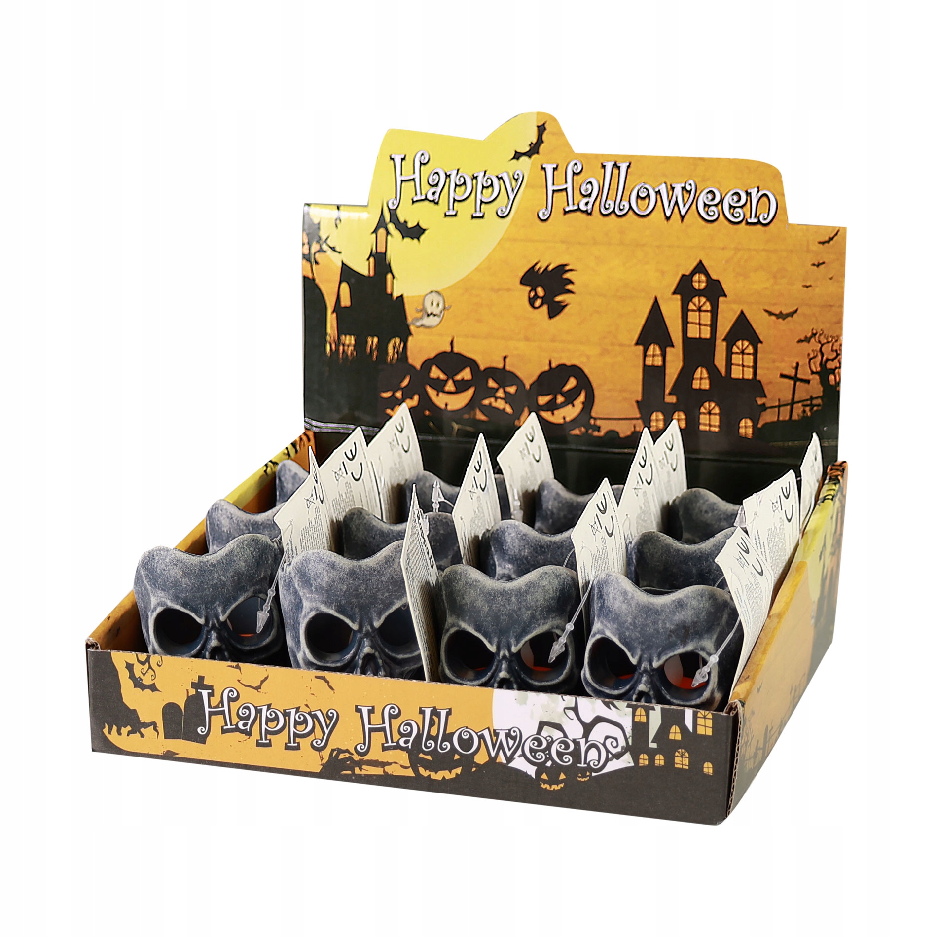 Лампа на Хеллоуїн у формі черепа - ідеальне доповнення до справжньої вечірки на Хеллоуїн! Міні -лампа пластику 7 см працює на 3 LR1130 батареях (включені батареї). Все, що вам потрібно зробити, - це перемикач комутатора внизу. Після включення лампа спалахує з різними кольорами, які перемикаються. Розмір лампи становить близько 7 см. Продаж лише на всій упаковці 12 шт.