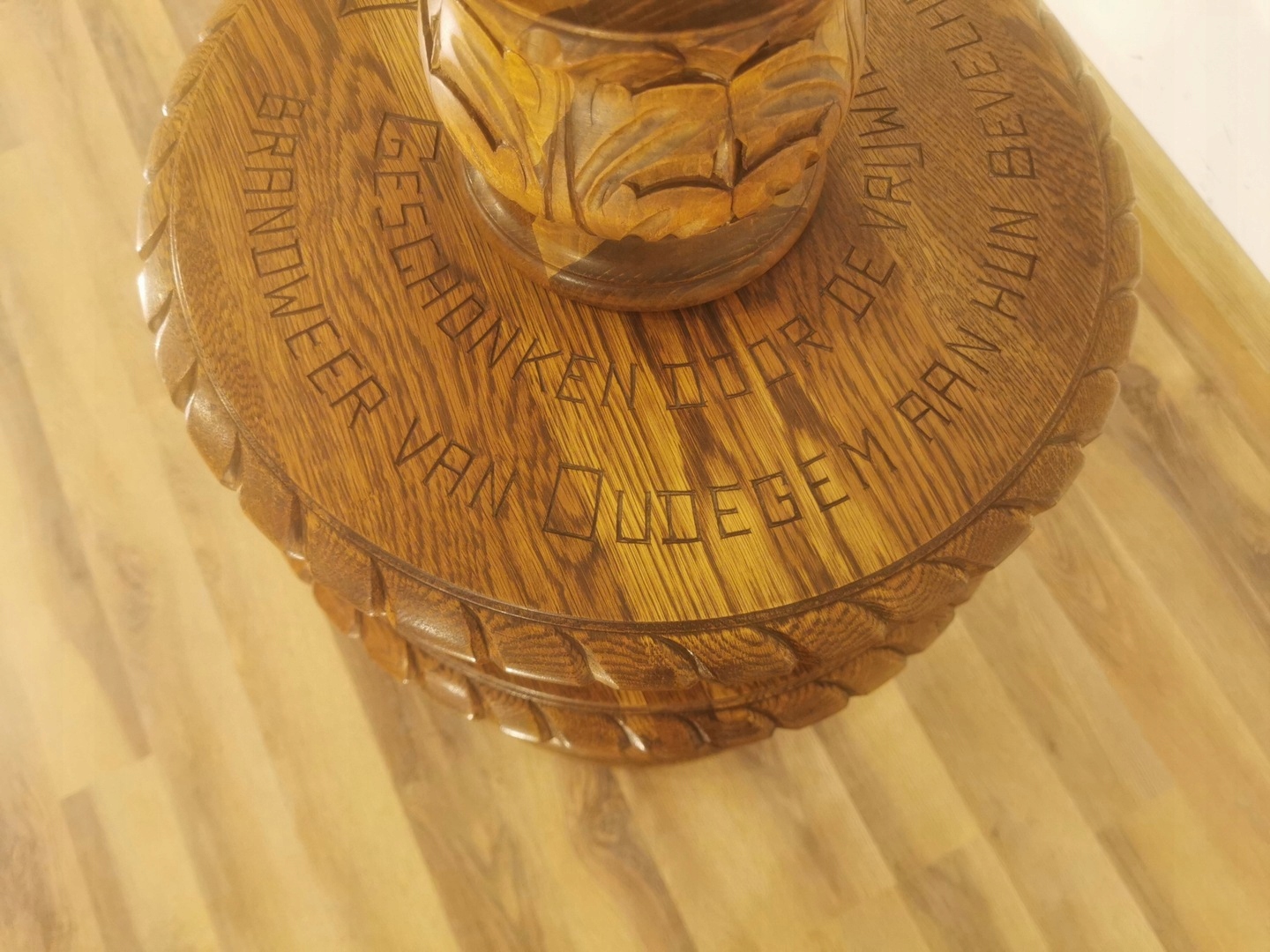 Колонка світильника складається з ефектно точеної та прикрашеної ручної рослинної різьби.