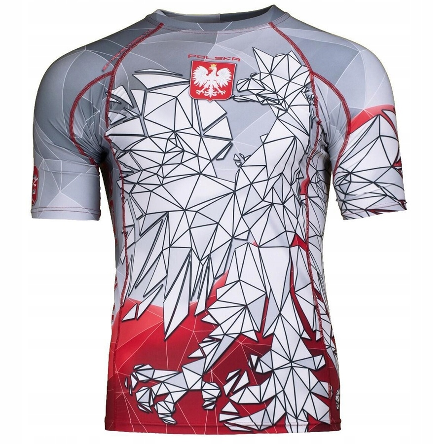 Short Sleeve Rashguard Polska G/RED - це гарантія легкості, міцності та високої еластичності завдяки використанню інноваційного трикотажу REH-TECH з домішкою спандексу. Його компресійний крій, особливо рекомендований у контактних видах спорту, забезпечує не лише ідеальну посадку, але й додаткову підтримку для м’язів.