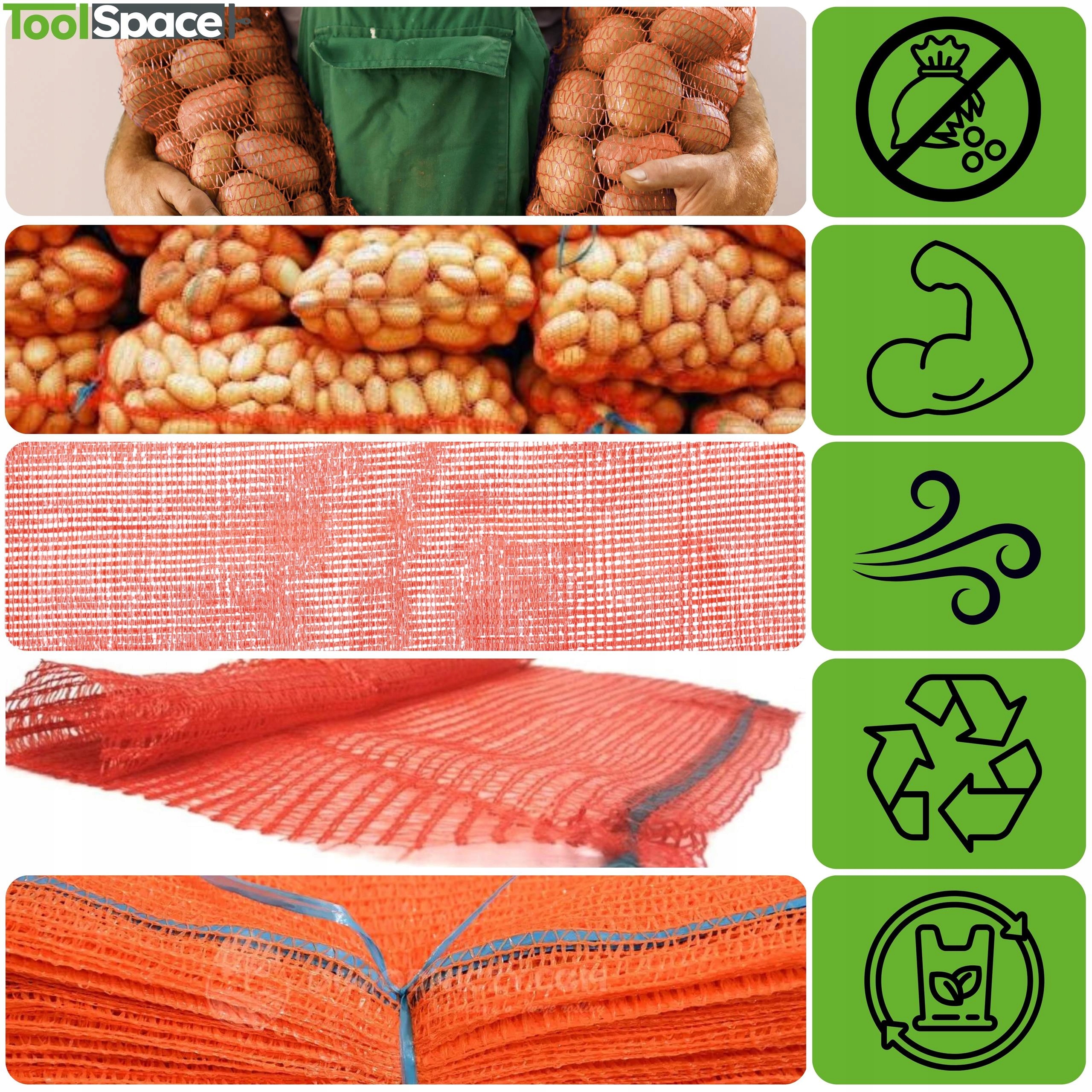 мішки з Raszlla - це те, що потрібно на вашій фермі чи компанії! Рашл -мішки комфортні, дуже ефективні, і в той же час недорогі, що є їх безперечно перевагами. Вони працюють як упаковка для багатьох видів їжі , наприклад Картопля, цибуля, перець або яблука. міцний і дуже стійкий можна використовувати багато разів. Спеціальна структура сітки дозволяє дихати та збереженими продуктами. Він має високу стійкість до вологи та високої температури A плетіння з волоконною волокном забезпечує високу міцність і гарантує свіжість продуктів, розміщених у них.
