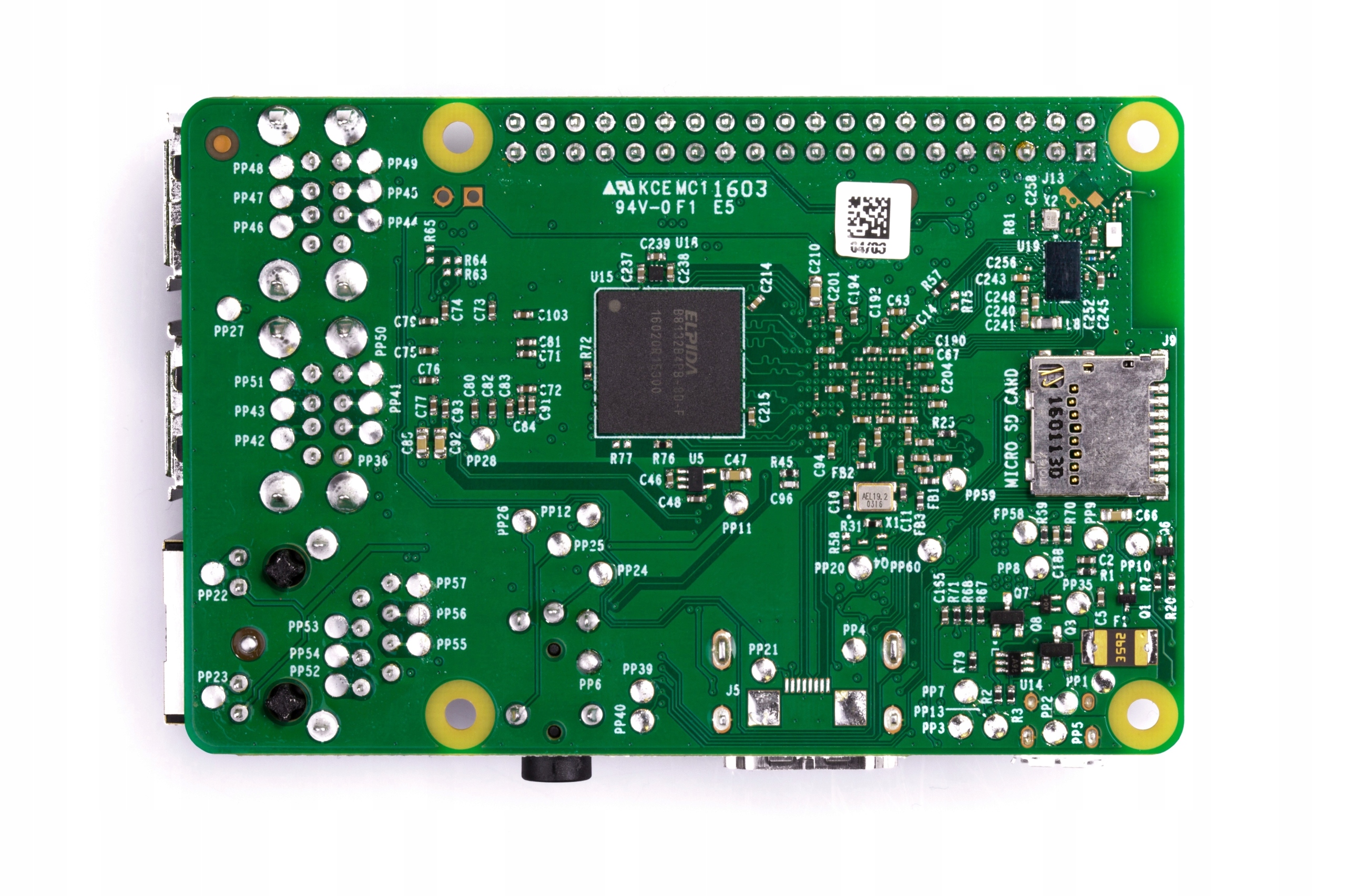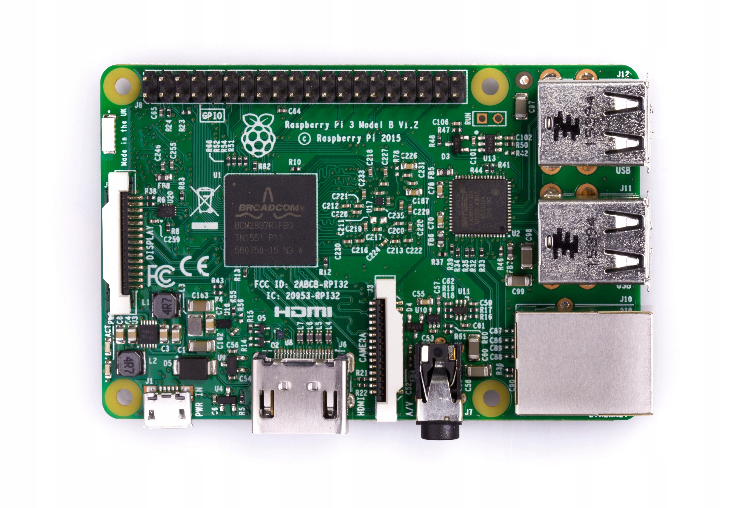 Raspberry Pi 3 B має ефективніший чотирьохядерний 64-розрядний процесор Broadcom BCM2837 ARM-8 Cortex-A53 1,2 ГГц. ніж у попередній версії. Крім того, плата оснащена чотирма портами USB, 40 GPIO, роз’ємами для карток microSD, портом Ethernet і чотирма отворами для кріплення.
