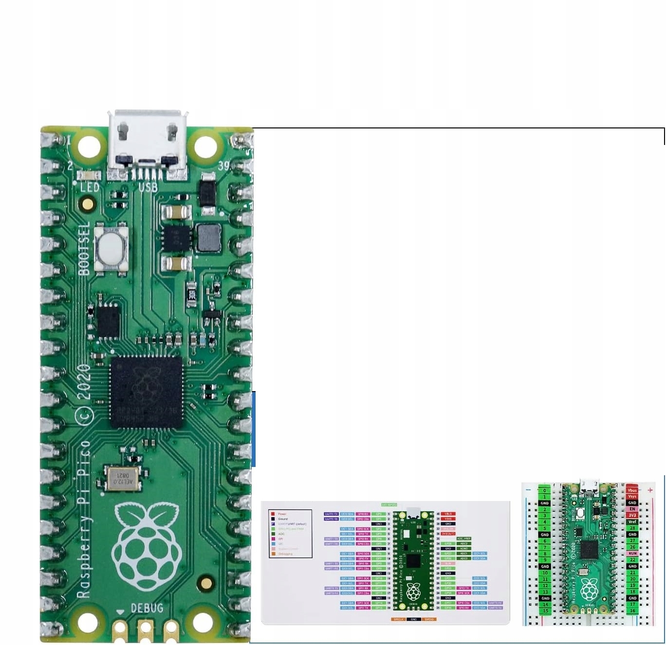 - Включає Raspberry Pi Pico- маленьку, швидку та універсальну плату, створену на основі двоядерного процесора. (Входить до цього набору.)