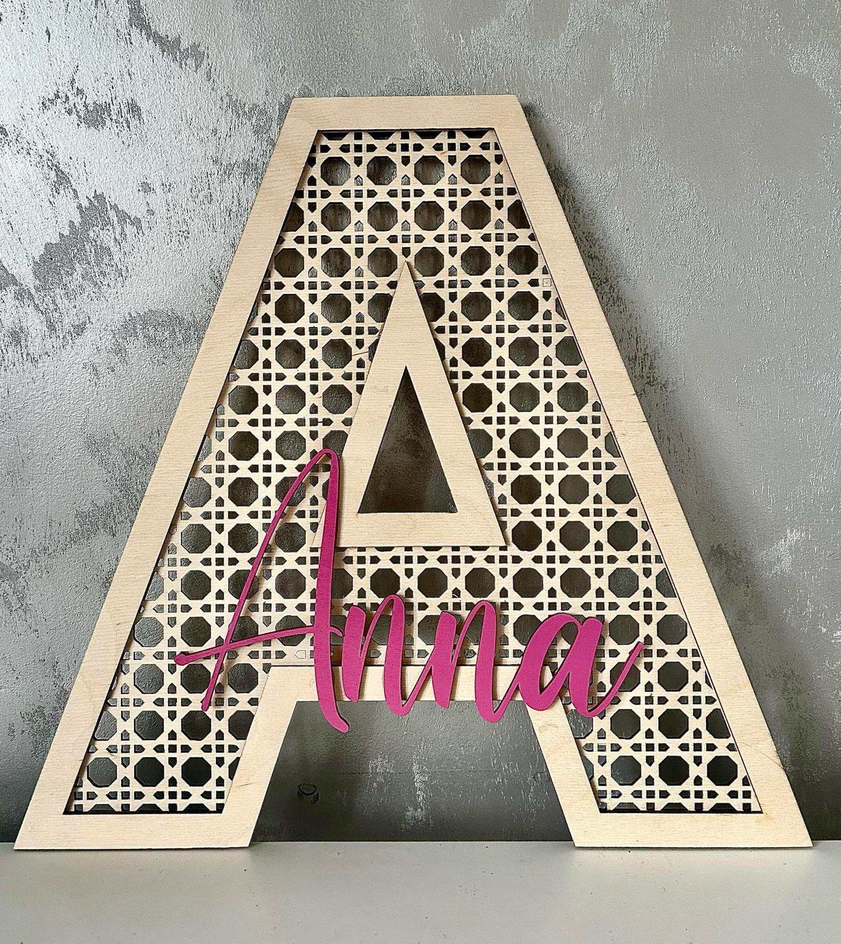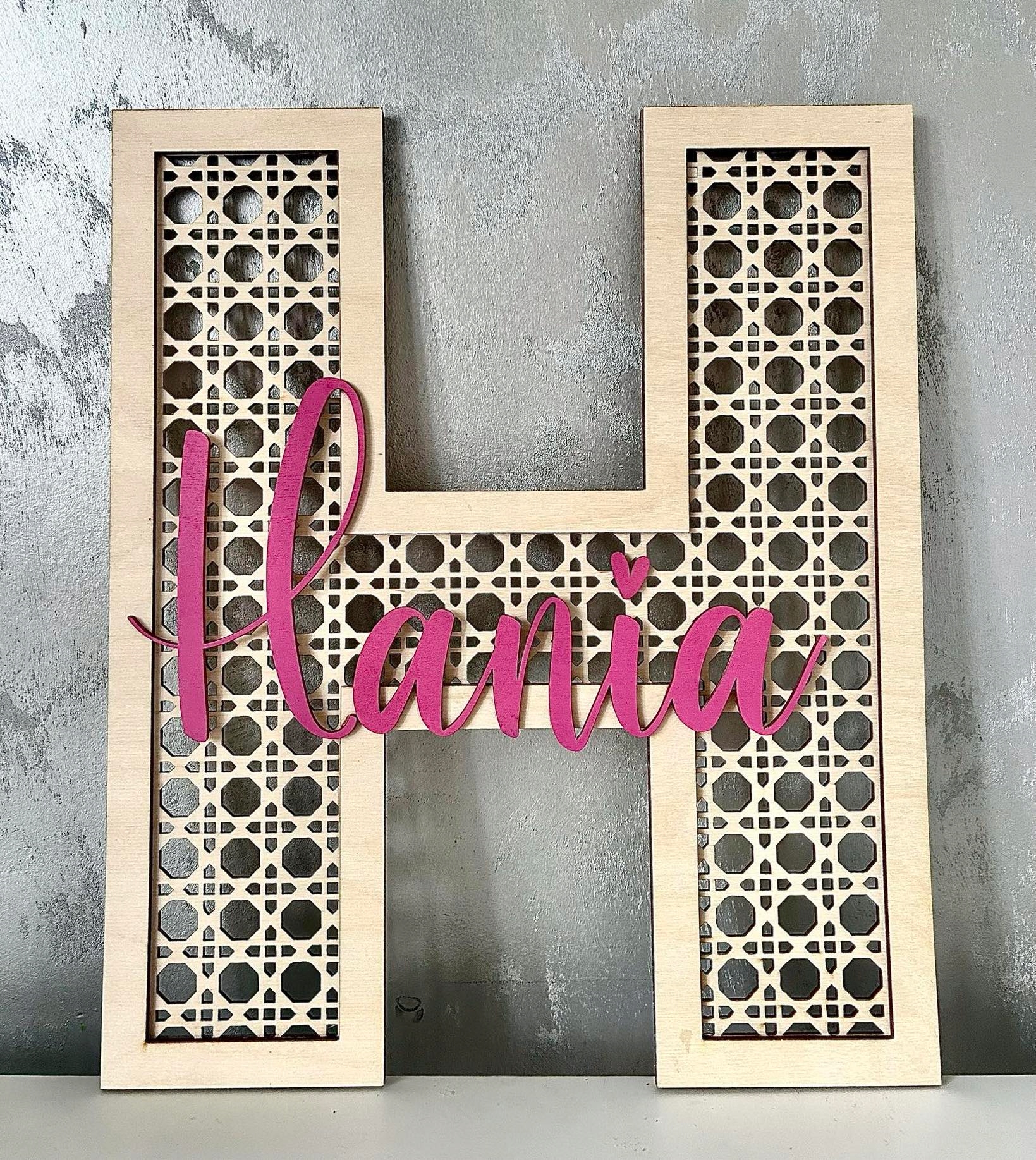 БУКВА РАТАН 3D ГАРНА ДЕКОРАЦІЯ БУКВА ІМ'Я ДИТИНИ УНІКАЛЬНИЙ ПОДАРУНОК
