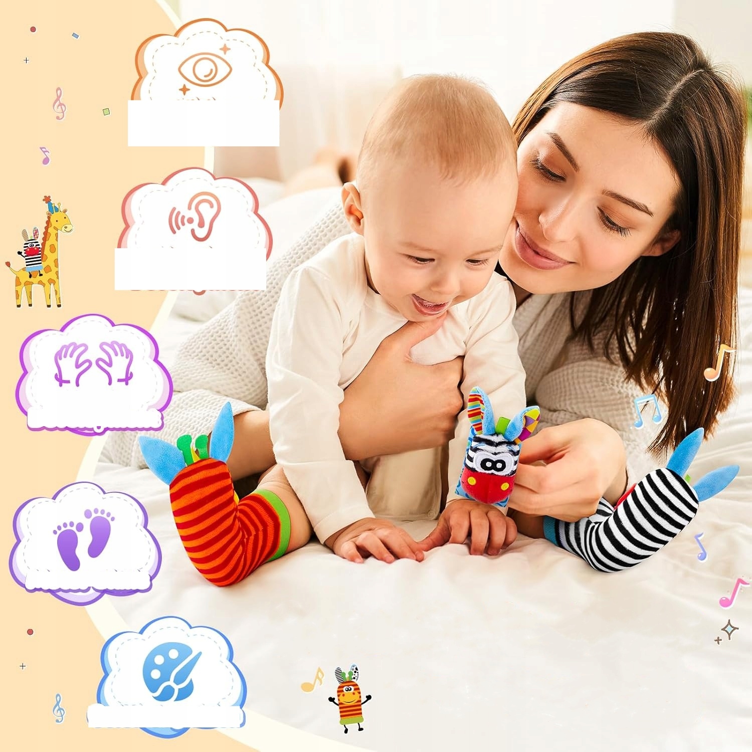 стимулює почуття дитини: барвисті шкарпетки з брязкальцями для дітей раннього віку стимулюють візуальний розвиток вашого малюка. Ці дитячі іграшки гарантують багато годин розваг.