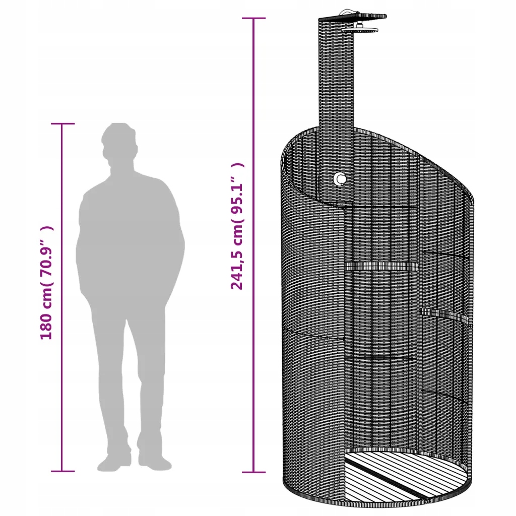Насолоджуйтесь освіжаючим душем у свіжому повітрі під нашим садовим душем з поліратету! Це легкий, простий у чистоті та широко використовується для виробництва продукції, призначених для зовні, завдяки його міцності та стійкості до погодних умов. Більше того, база смуг запобігає накопиченню води та захищає ноги від бруду. Окречений садовий душ може бути підключений до змії з водою або садовим краном, що сприяє його використанню. Стабільна рама: -розфарбована сталева рама гарантує міцність та стабільність столу у щоденному використанні зовні. Фітнес, ми рекомендуємо забезпечити їх водонепроникною кришкою. Ширина x висота)