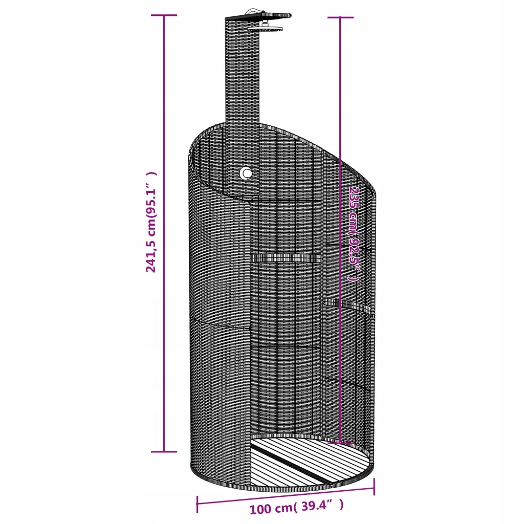 Раттен ПЕ садовий душ 100x100x241.5 сірий