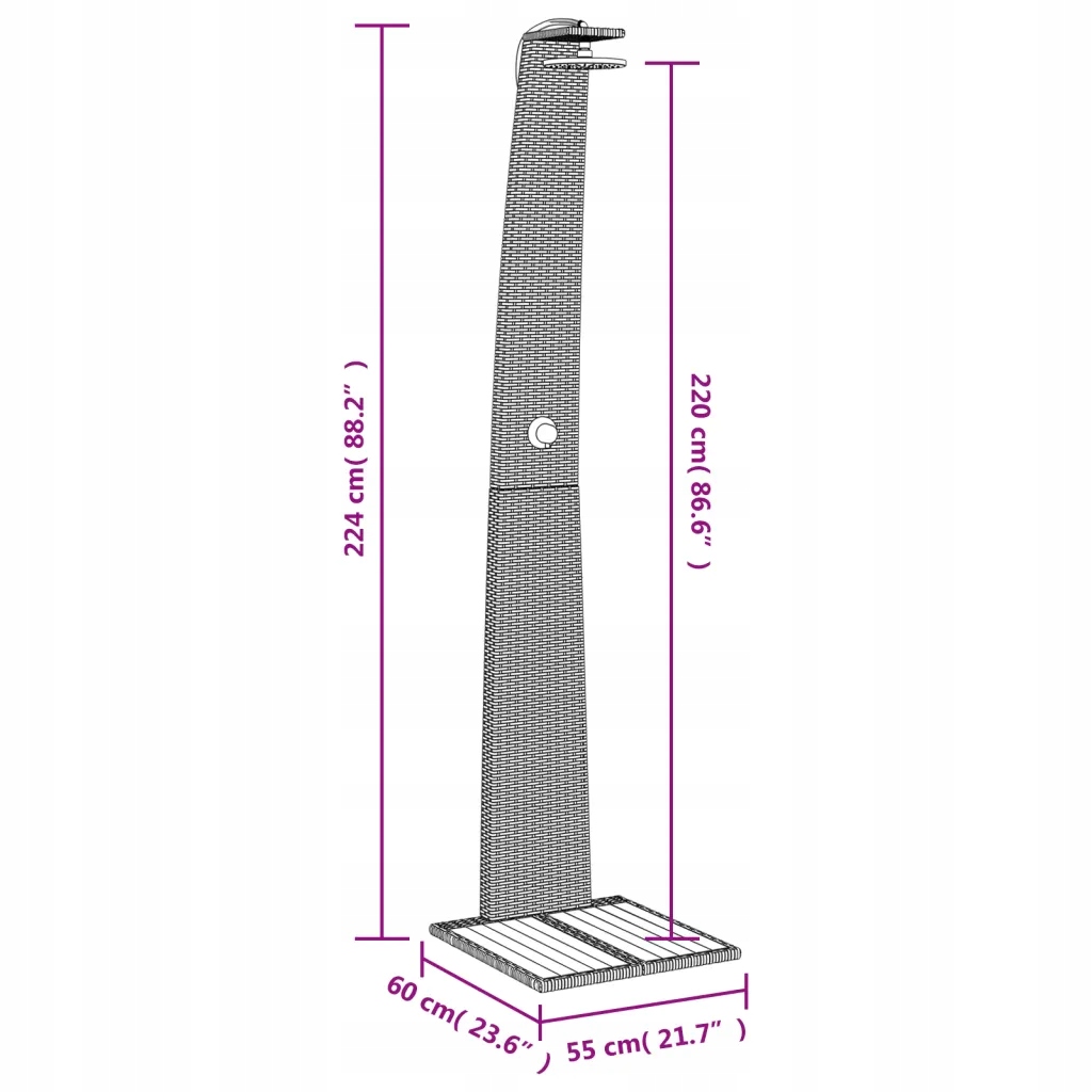 - Розміри Всього: 55 x 60 x 224 см (довжина x ширина x висота)