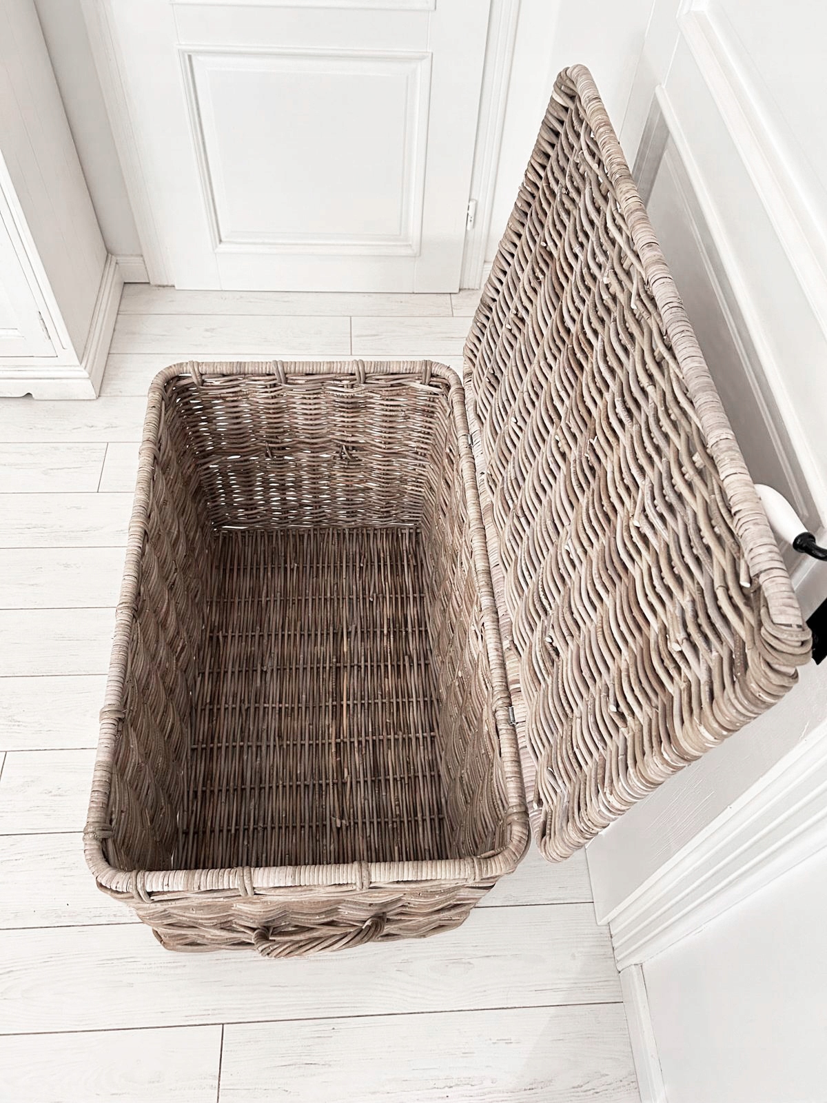 Сільська скриня, кошик, контейнер Hampton, виготовлений з ротанга з кришкою. Він має стабільний кадр, він ідеально підходить для зберігання ковдр, подушок, звичайно, його також можна використовувати для інших цілей. Він також ідеально знайдеться як багажник для іграшок у дитячій кімнаті або як ліжковий стіл у спальні. Зроблено вручну, пам’ятайте, що це природний продукт, а колір може бути трохи . Кришка прикріплена двома петлями.