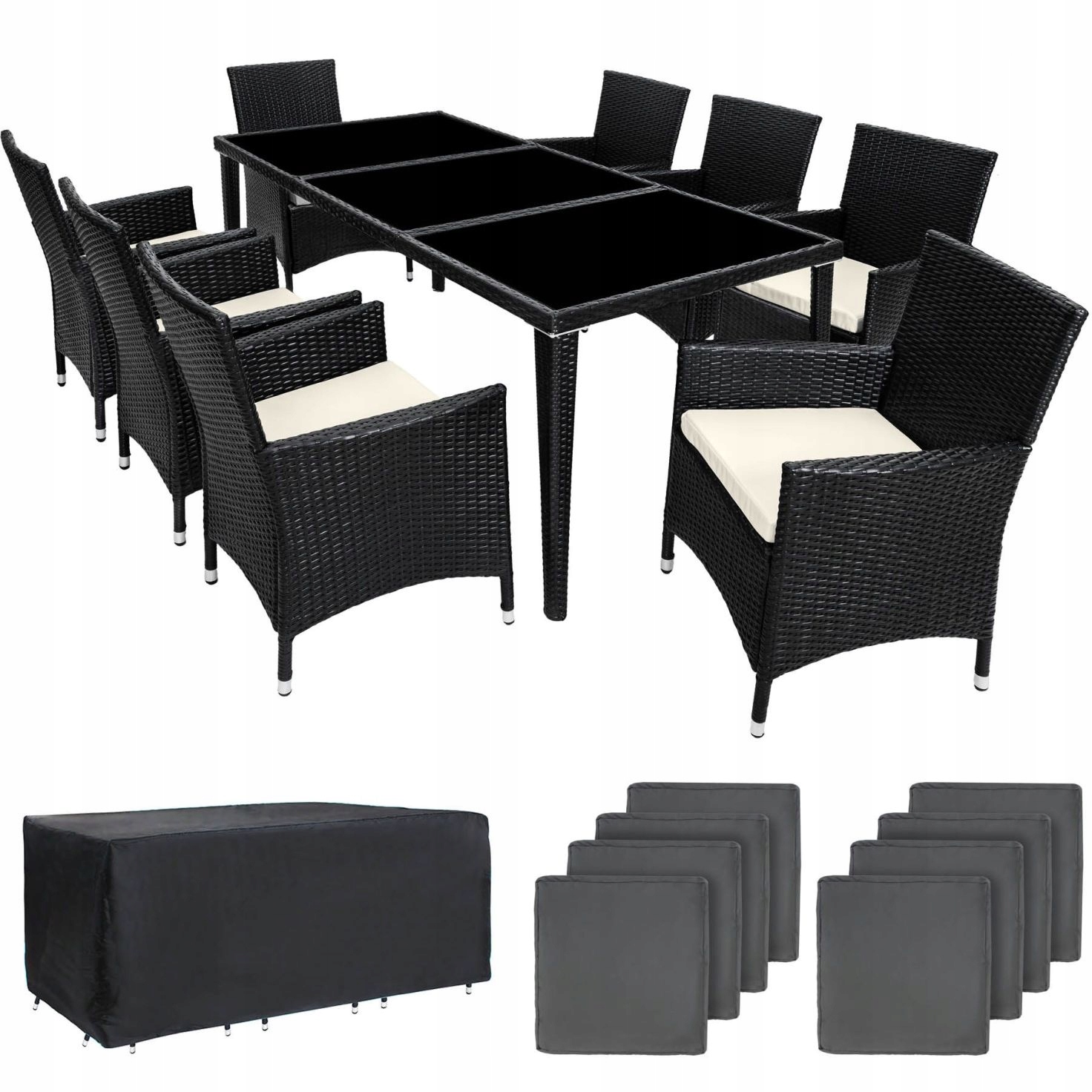 Представлений набір меблів Technorattan має універсальне використання і є справжньою прикрасою саду, тераси, зимового саду чи вітальні. Зручні стільці та елегантний стіл спонукають вас проводити час з родиною чи друзями. Поліція встановлювала не лише елегантний вигляд, але й тривалий період використання. Поверхня столу з 2 темними скляними елементами виглядає стильно і легко зберегти чистоту. Дуже зручні поліестерні подушки ідеально відповідають кольору з меблями з ротанга, а чохли мають блискавку на спині, тому їх можна легко зняти та очистити. Просочена поверхня захищає подушки від шліфування. Завдяки просоченню вони стійкі до бруду та вологи. Набір також включає дощову кришку.