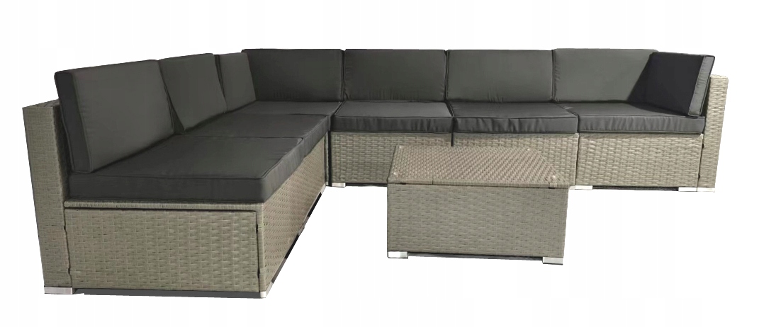 Це виглядає ідеально на терасі - а також на галявині. Його можна використовувати як набір або кут. Стіл з верхом із загартованого скла. Технологічні стійкі до погодних умов та УФ. Подушки, зроблені з просоченого замку, детально - миття. Включає 6 подушок для сидінь і 8 подушок для спинки.