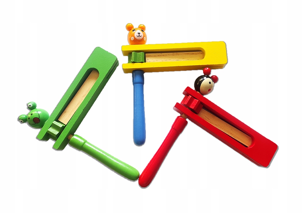 Обертаючи ручку, іграшка видає гучний звук, ударяючись по дерев’яних об’єктах.