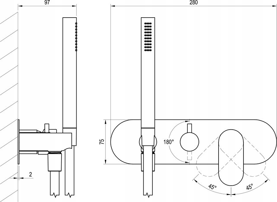 - рекомендовано: для ванн з переливним наповненням і встановленим душем АБО для душових кабін, які мають тропічний душ і душову лійку