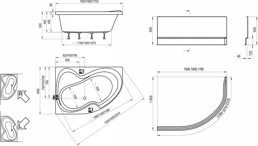 Ванну Rosa II можна доповнити шторкою для ванни. Рекомендовані аксесуари - передня панель, зливний злив для ванни. Передня панель сумісна як з лівою, так і з правою версією ванни. Концепція виробів для всієї ванної кімнати, яка включає умивальник, меблі, дзеркало та змішувачі, відноситься до ванни. Ванна з армуванням ламінатом (LA).