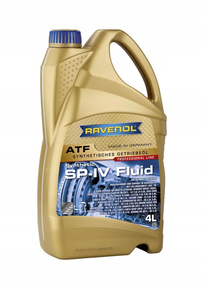 рідина Ravenol ATF SP-IV-це синтетична рідина ATF (автоматична коробка передач) для автоматичної коробки передач в останній технології HC/HT Hydrocrackled Oil, розроблена для 6-ступінчастої автоматичної коробки передач Hyundai. Спеціальна рецептура забезпечує кращі властивості в поєднанні з порівнянними маслами ATF.