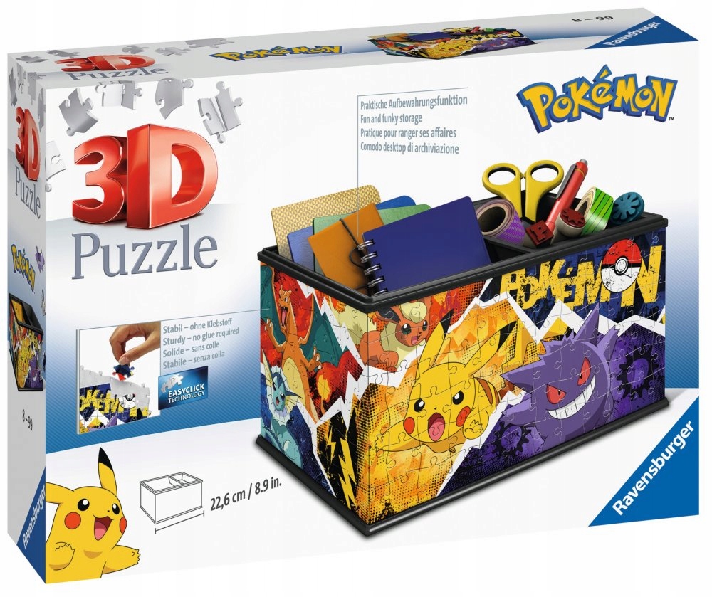 3D Pokozle Pokemon шкатулки - це обов'язково для всіх шанувальників покемонів, які люблять головоломки і шукають місце для своїх дрібничок. Цей дивовижний продукт дозволяє творче, задовольняти задоволення. Складні головоломки створюють практичний контейнер для шкільних приладів, дівочих ювелірних виробів та скарбів хлопчиків.