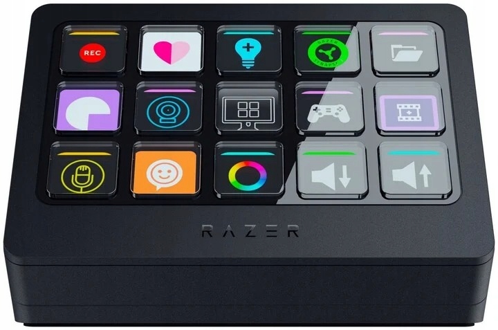 Завдяки 15 мембранним кнопкам, які входять до складу Razer Stream Controller X, ви можете створити практичні ярлики, які полегшать вашу роботу. За допомогою контролера ви можете транслювати, виконувати постпродакшн відео, записувати музику, керувати світлом, програмами та звуком.