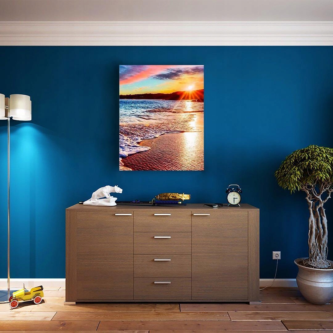 Картину за номерами «Захід сонця» можна придбати собі або на подарунок підлітку чи дорослому, незалежно від віку вік. Робота над його розфарбовуванням неодмінно подарує вам масу приємних моментів, а вже виконана робота стане чудовою і ефектною ідеєю для подарунка, яким ви зможете прикрасити свою квартиру чи офіс .