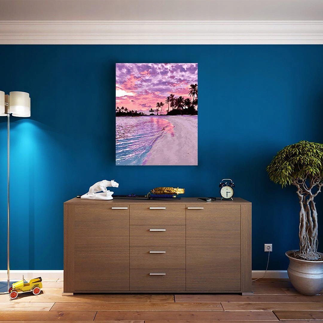 Картину за номерами «Рожевий захід» можна придбати самому собі або на подарунок підлітку чи дорослому, незалежно від їх віку. Робота над його розфарбовуванням неодмінно подарує вам масу приємних моментів, а вже виконана робота стане чудовою і ефектною ідеєю для подарунка, яким ви зможете прикрасити свою квартиру чи офіс .