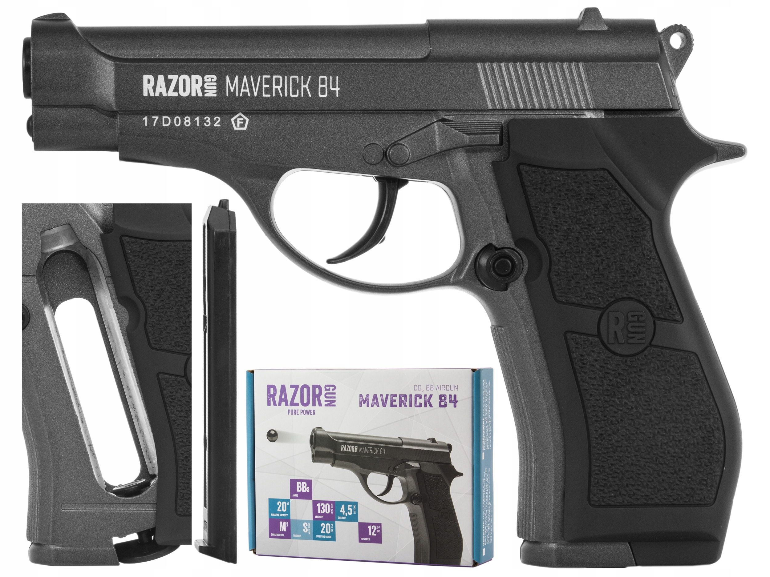 Якщо ви шукаєте свою першу пневматичну зброю, RazorGun Maverick 84 – це перевірена модель, яка вирізняється доступною ціною, міцною металевою конструкцією та високою ефективністю стрільби.