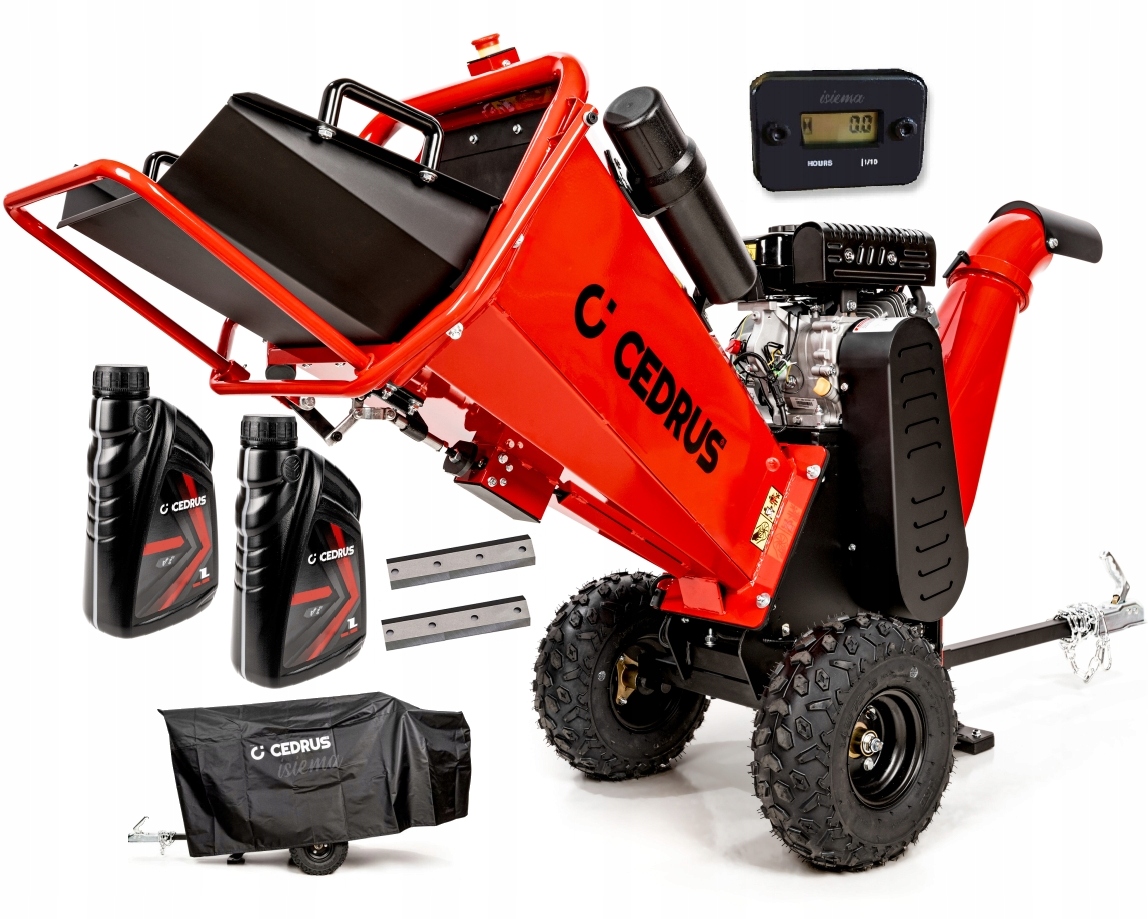 ✅ Подрібнювач Cedrus RB02 PRO — це машина, призначена для подрібнення гілок діаметром до 120 мм. Він оснащений ефективним двигуном Loncin об'ємом 212 см3 з чавунною гільзою циліндра і транзисторним запалюванням. Міцна конструкція робочого пристрою, який складається з барабаназ двома робочими ножами, дозволяє подрібнювати 3-5 м3 гілок за годину. Двигун приводить в рух робочу систему за допомогою двох приводних пасів. Привідний вал встановлений на підшипниках і оснащений затискачами для полегшення обслуговування машини. Подрібнювач можна легко транспортувати завдяки великим колесам і автомобільній зчіпці. Безпека оператора забезпечується вимикачами, які в разі небезпеки вимкнуть двигун і тим самим зупинять робочий барабан.