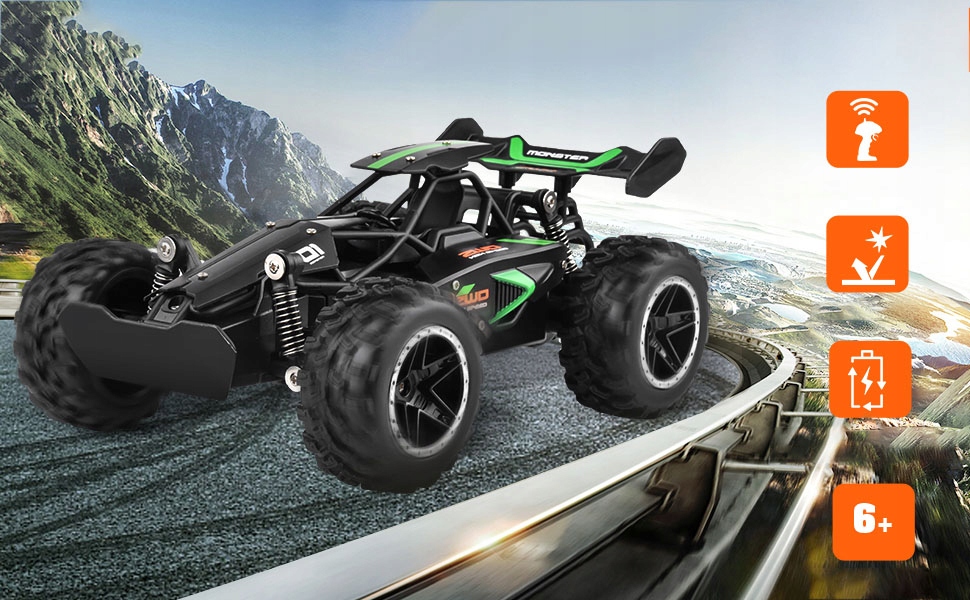 - Позашляховик RC виготовлений з високоякісної ABS, з міцним кузовом і переднім і заднім бамперами, який має хорошу ударостійкість і може швидко регулювати свій стан, навіть якщо він зіткнеться зі стіною або іншим бампером автомобіля;