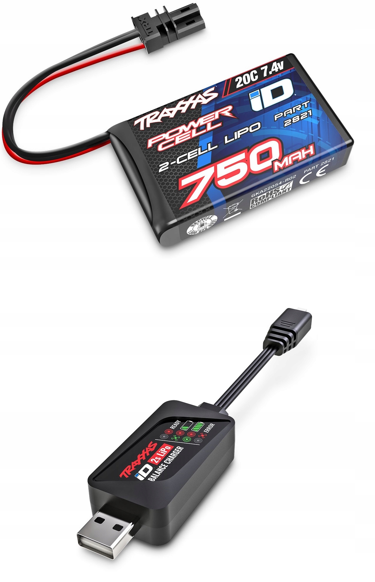 Акумулятор LiPo 2S, що входить у комплект, забезпечує 7,4 В і працює понад годину з безпекою та простотою Traxxas iD. Спеціально розроблений роз’єм iD підключається безпосередньо до зарядного пристрою ECM-2.5.