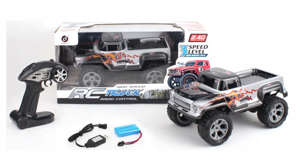 Monster RC Off -Road Car з дистанційним керуванням . Потужний двигун, 3 -х швидкості швидкості, амортизатори, захисна рама проти ударів. Підходить для дітей з 5 років .