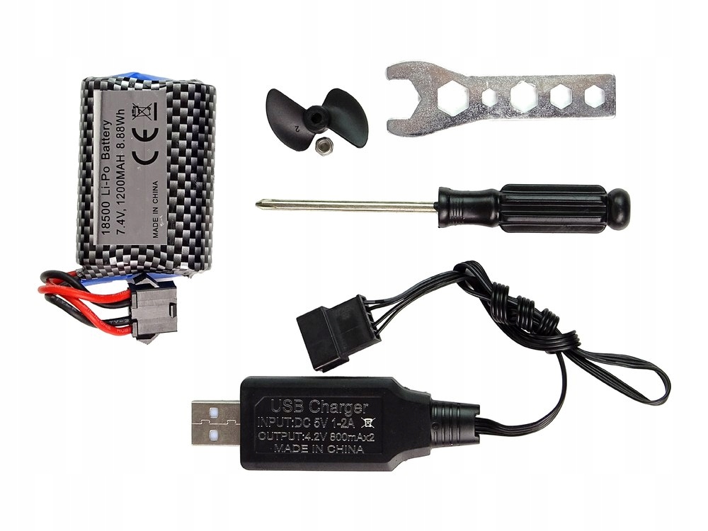 У набір також входять такі аксесуари, як: кабель акумулятора, гайковий ключ, викрутка, підставка для моторного човна, яка забезпечить її стійкість на суші, і гвинт.