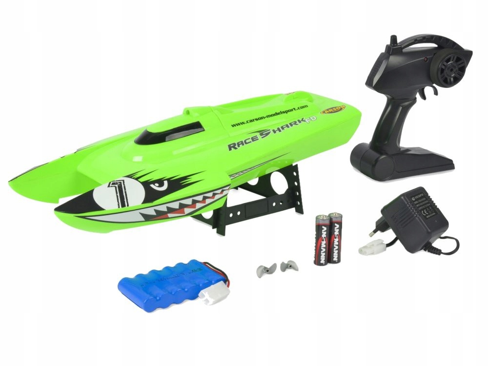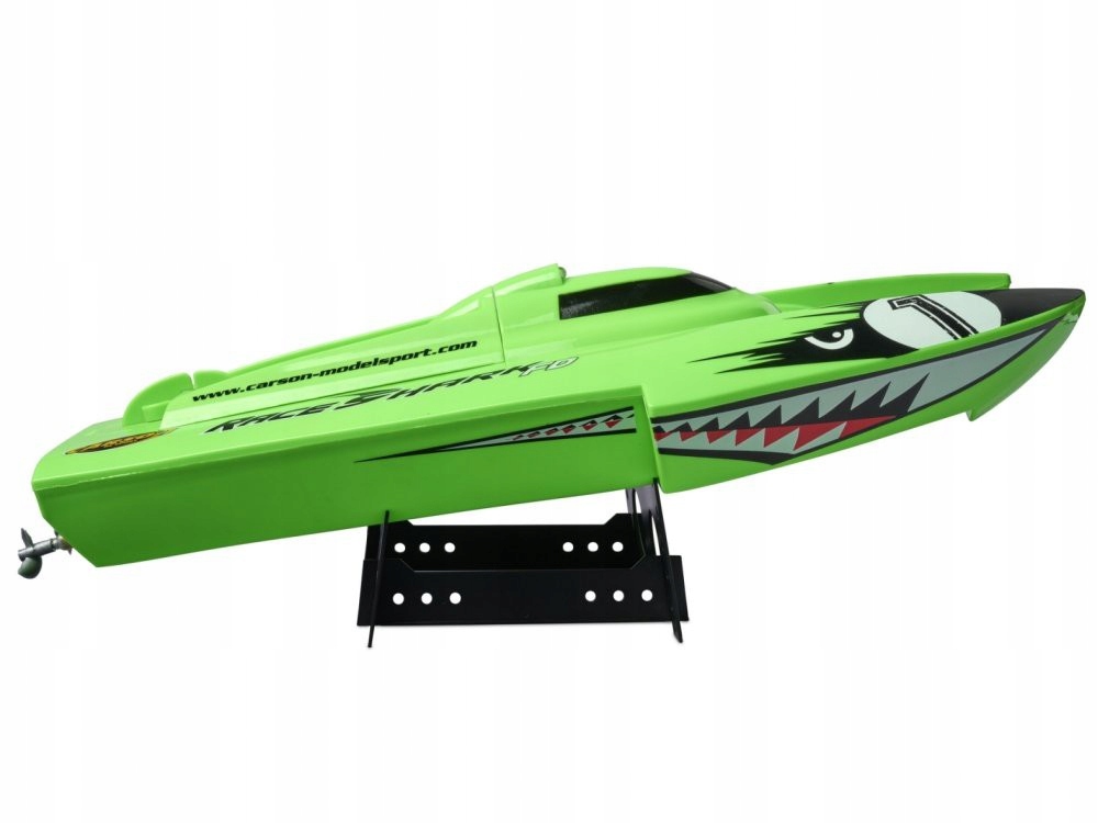 Набір фабрики, зібраного та намальованого апаратом управління 2,4 ГГц. Два двигуни дозволяють моделі стрибати до води. Човен контролюється за допомогою RC 2,4 ГГц. Схема безпеки запускає łódź лише тоді, коли він знаходиться у воді, що робить перемикач/перемикач непотрібним. GHZ