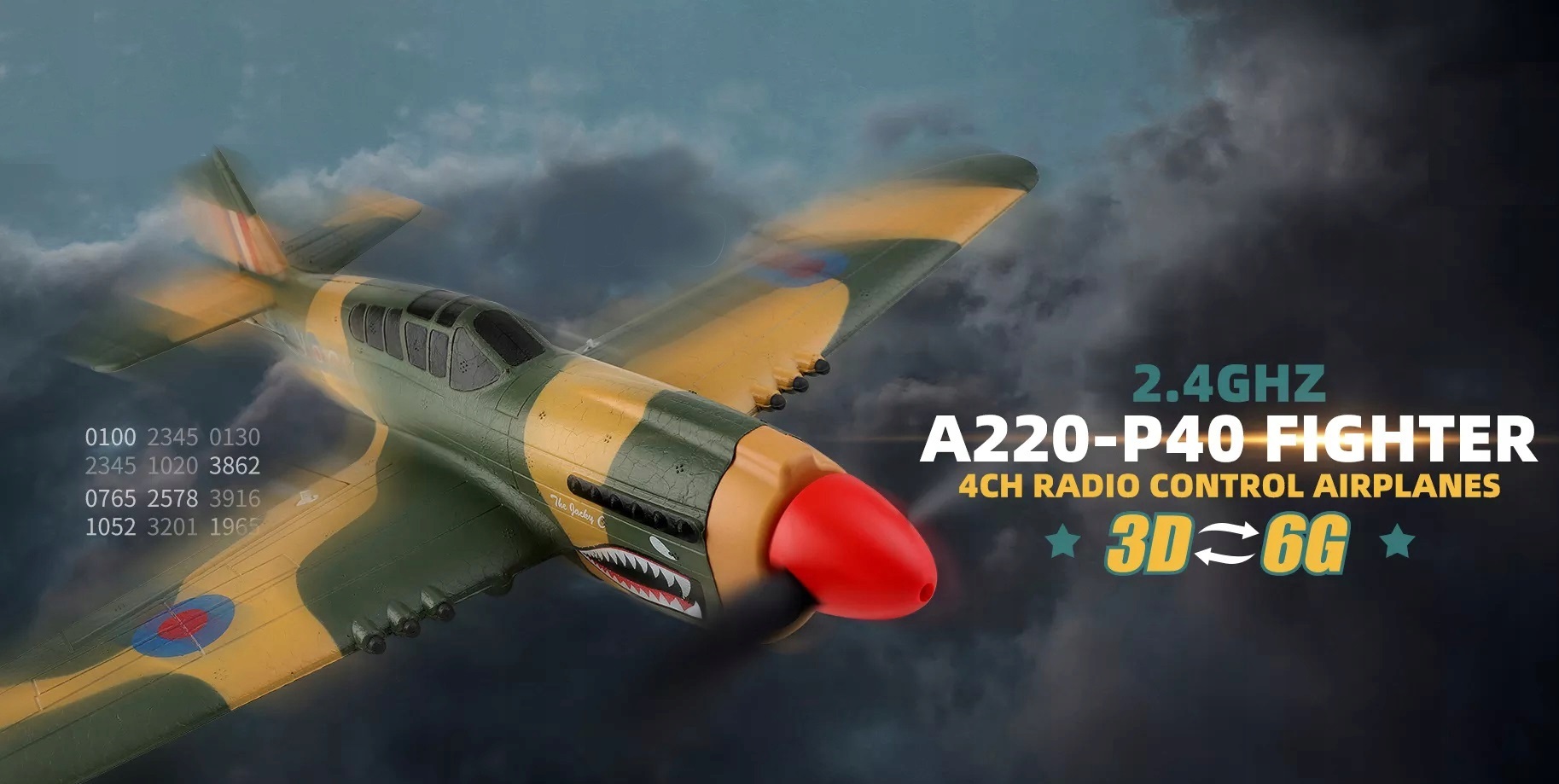 ВІЙСЬКОВИЙ ЛІТАК З ДИСТАНЦІЙНИМ КЕРУВАННЯМ P40 A220 утримує літак рівномірно