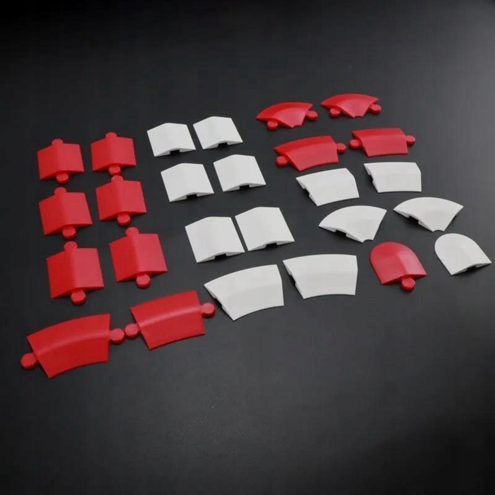 Стиль C біло-червоний: прямий бар’єр: 31x31 мм/1,22x1,22 дюйма; 90-градусний бар'єр: 50x21 мм/1,97x0,83 дюйма; L бар'єр для згину: 46x33 мм/1,81x1,30 дюйма; S Bend Barrier: 39 x 31 мм/1,54 x 1,22 дюйма; Одинарний прямий бар’єр: 31x31 мм/1,22x1,22 дюйма
