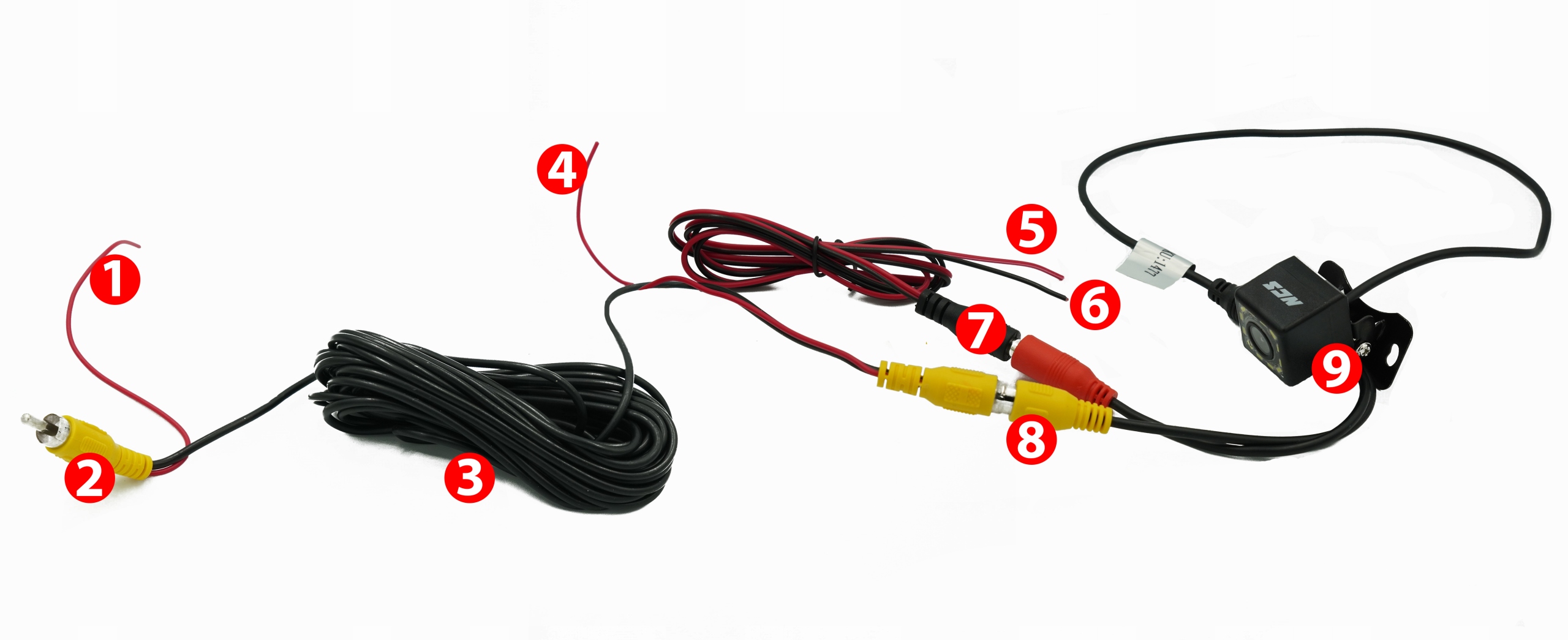 1. Кабель живлення - підключається до кабелю, який формує зображення камери заднього виду на радіо або монітор.