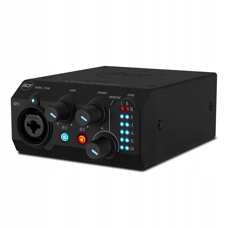 Апаратний інтерфейс RCF TRK PRO1 — це надійна та добре продумана студія USB 2.0 із усіма можливостями для підключення мікрофонів, музичних інструментів або сигналів лінійного рівня до комп’ютера macOS або Windows. Внутрішня лінійна схема попереднього підсилювача дозволяє підключати мікрофони, що живляться від фантомного живлення 48 В, і інструменти рівня Hi-Z. Вхідний сигнал можна направити на DAW (цифрову аудіоробочу станцію) з роздільною здатністю до 24 біт і 192 кГц. Інтерфейс можна підключити до підсилювача та колонок, активних моніторів, навушників, аналогового мікшера чи будь-якого іншого аналогового аудіопристрою.