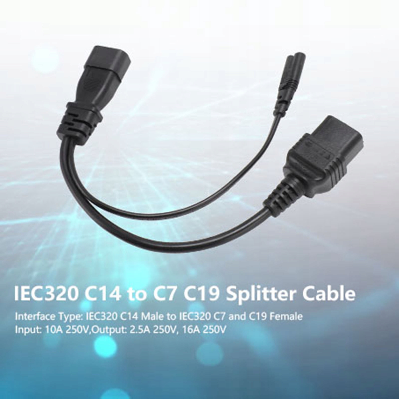 1. Універсальна сумісність: цей шнур живлення із Y-подібним розгалужувачем перетворює стандартні головки IEC320 C14 на жіночі головки IEC320 C7 та C19, дозволяючи підключати різноманітні пристрої.