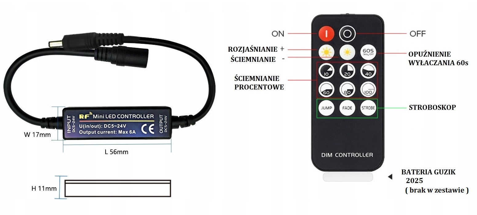 РЧ КОНТРОЛЕР ДЛЯ МОНО СВІТЛОДІОДНИХ СТРІК ПЕРЕМИКАЧ ДИМЕРА 6А