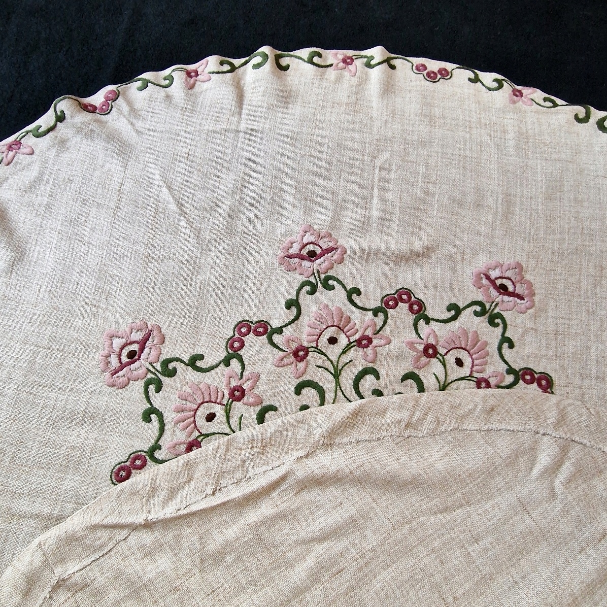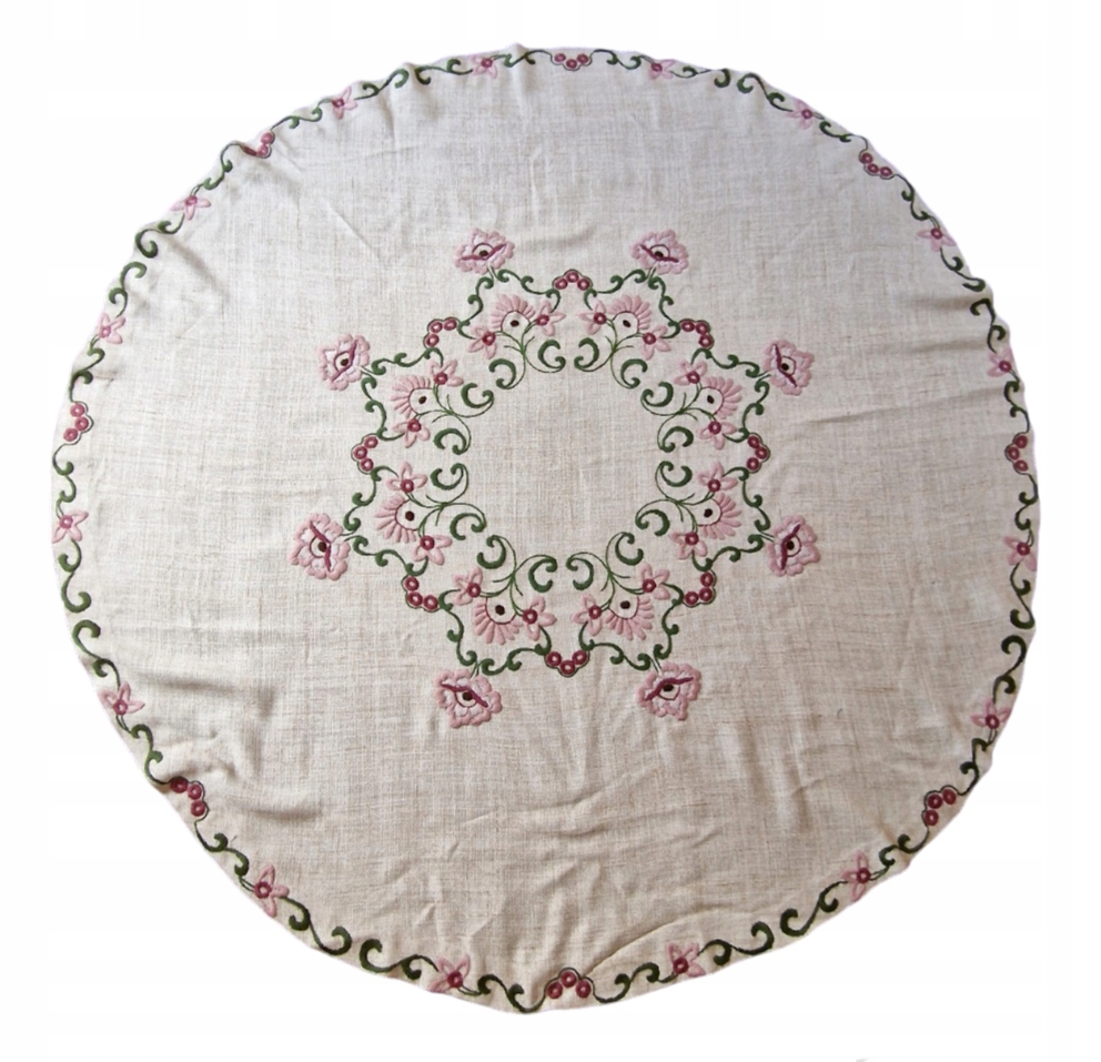 RĘCZNIE WYSZYWANY OKRĄGŁY OBRUS VINTAGE