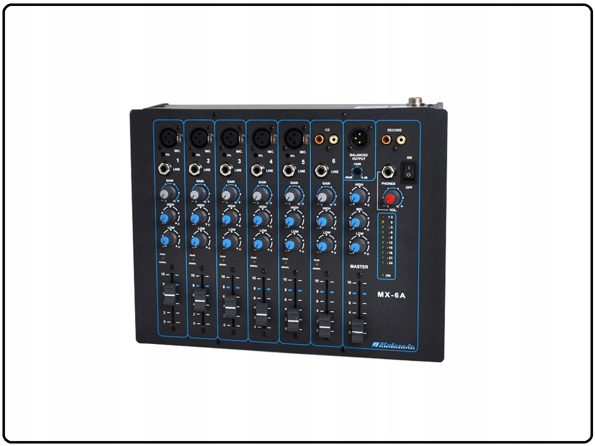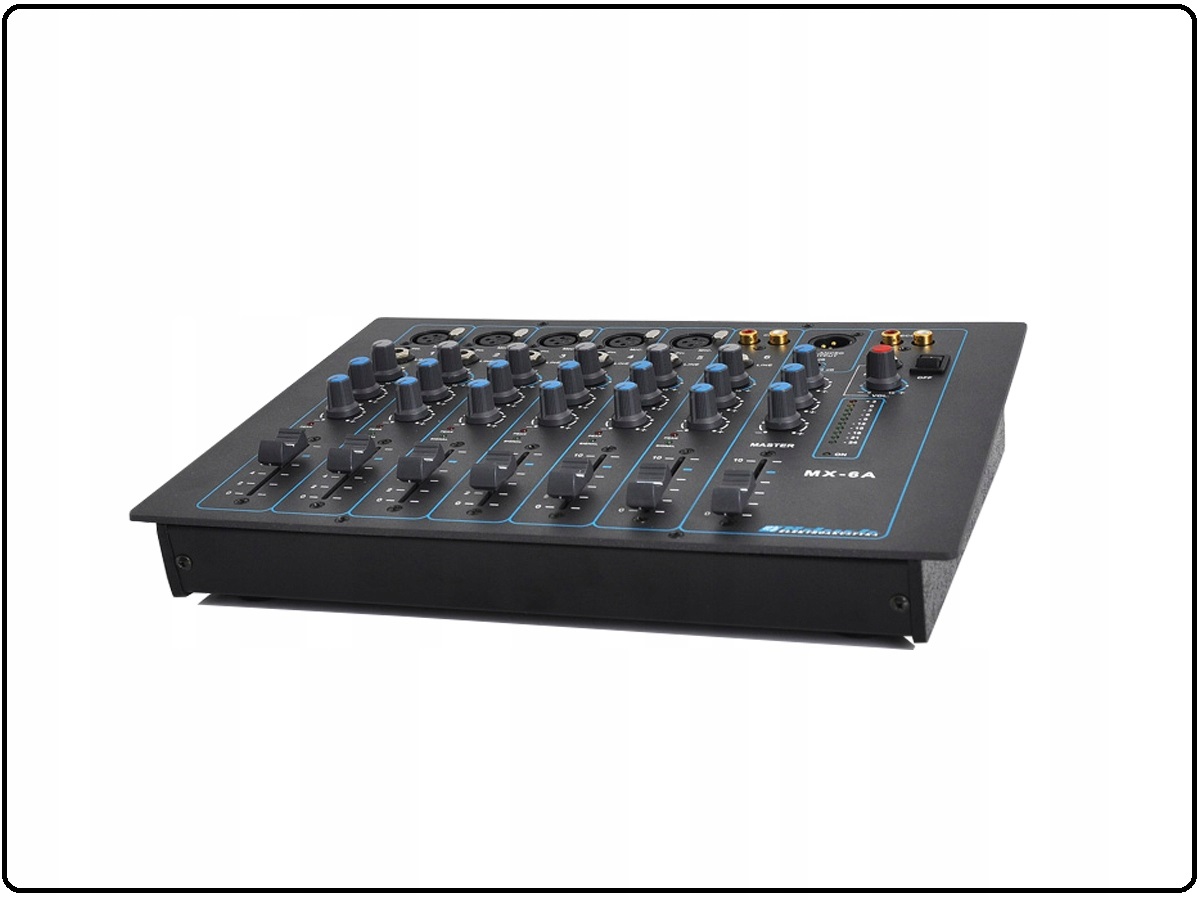 Надзвичайно практичне розташування елементів і гнізд робить керування акустичним мікшером MX-6A простим та інтуїтивно зрозумілим. Технічні параметри рішення дуже перспективні. Низька ціна в поєднанні з широким функціоналом робить його одним з кращих рішень цього класу на ринку. Мікшер вагою менше 3 кг має ряд практичних рішень - від вищезгаданих рішень до налаштування симетричного виходу, регулювання посилення навушників, до налаштування тону суми (сопрано, альт і бас), і закінчуючи з регулятором сумарного посилення та індикатором драйву. На додаток до класичного мікрофонного входу XLR, MX-6A також має ряд інших входів і виходів, зокрема: великий лінійний вхід, вхід для стрічки (cinch - відтворення) і вихід для стрічки (cinch - запис), регульований симетричний вихід і великий роз'єм для навушників. Серед елементів керування на особливу увагу заслуговують діод, що індикує овердрайв вхідного каскаду, і діод, що сигналізує про вхідний сигнал.