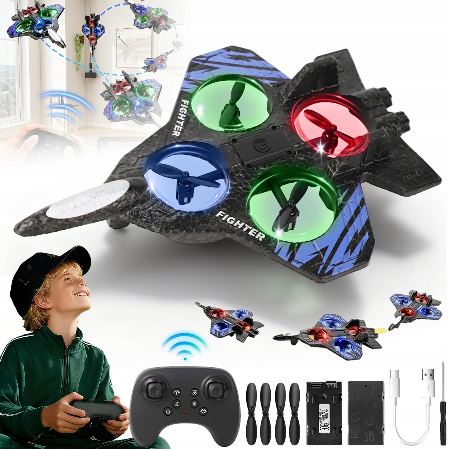 РЕАКТИВНИЙ ВИНИЩУВАЛЬНИЙ ЛІТАК із пінопласту 3 РІВНІ ШВИДКОСТІ НА 360° ОБОРТАННЯ
