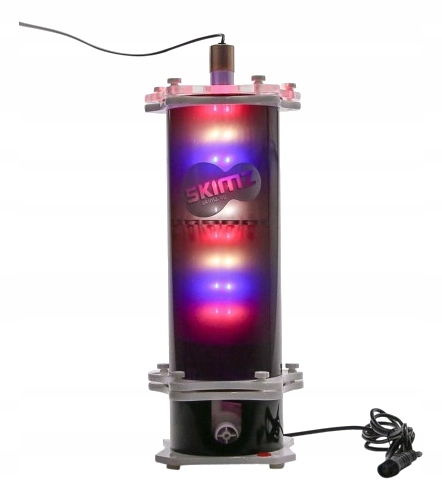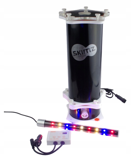 Усі реактори Skimz містять потужна світлодіодна система освітлення, яка укладена в кришталево прозору кварцову трубку. Це забезпечує найвищу оптичну чистоту, пропускаючи набагато більше світла порівняно зі звичайним склом. Світлодіоди були підібрані для забезпечення якомога швидшого росту макроводоростей. Коли вода протікає через реактор і контактує з кварцовою трубкою, вона активно охолоджує світлодіодні лампи. Ми не рекомендуємо вмикати світло, якщо вода не тече через реактор.