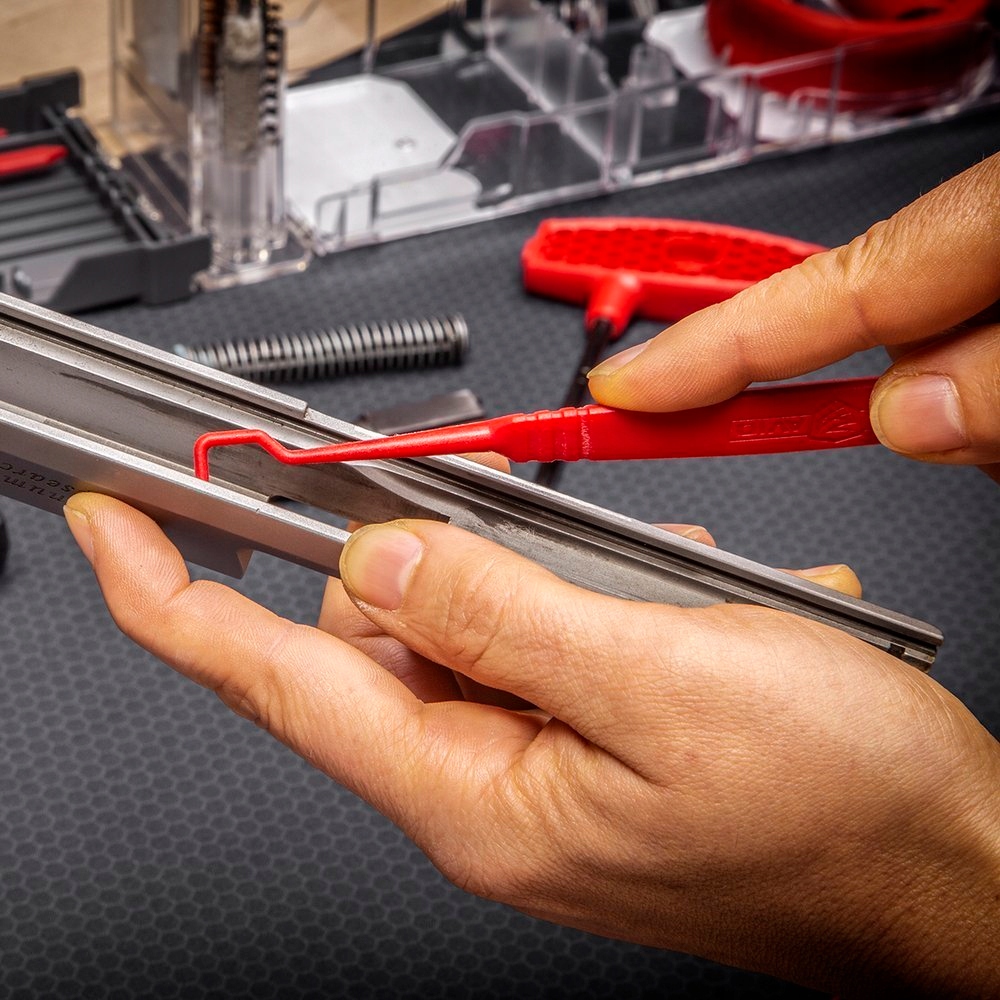 Спеціальний набір для чищення пістолетів калібру .22 для домашнього та польового використання. Включає очищувальний стрижень Bore Boss для швидкого чищення після кожної стрільби та розширений набір для чищення зброї, укомплектований усіма інструментами, необхідними для повне очищення стовбура, бойка та патронника. Калібр: .22CALCEatures: - Розширений набір для повного очищення стовбура, бойка та патронника - Шнур для очищення стовбура Bore Boss - Ергономічна Т-подібна ручка - Тримач склоочисника з отвором для тканини - Щітка для циліндрів із фосфорної бронзи - Нейлонова щітка для циліндрів - Швабра для бочок - 25 ганчірок для чищення - Органайзер для легкого доступу до інструментів - Точний скребок із Accu-Grip - 4-компонентний скручений сталевий очищувач стрижень із захисним покриттям - Вузька розумна щітка - Розумна щітка у формі ромба - Литий пластиковий корпус утримує елементи на місці - Петля, вбудована в корпус, дозволяє згорнути його Технічні дані: - Розмір (корпус): 25,5 x 10 x 4 см - Вага: 500 г