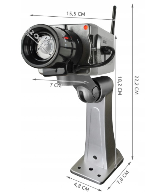 Камера-манекен є імітацією справжньої камери спостереження. Пристрій виглядає дуже реалістично.Він має миготливий червоний світлодіод, що створює враження цілодобового моніторингу. Об'єктив зроблено дуже детально. Камера має кабель, який з’єднує об’єктив із корпусом, що надає їй дуже реального вигляду. Манекен повністю регулюється.