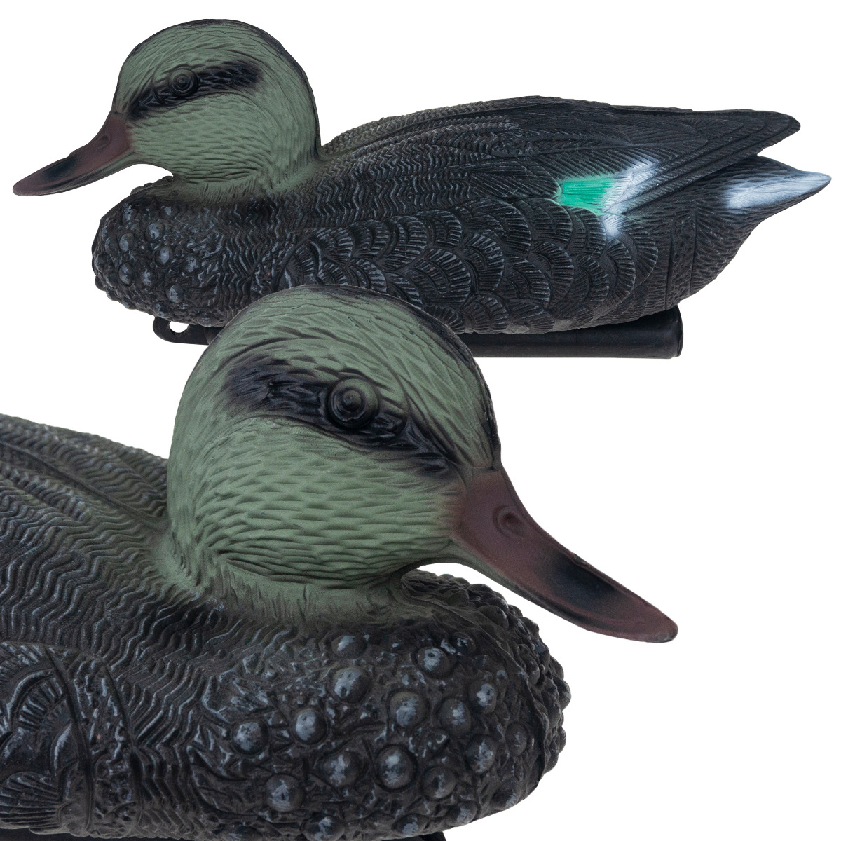 ✅ Під качкою є стабілізуючий елемент з отвором, через який можна прив'язати птаха, щоб він не поплив.