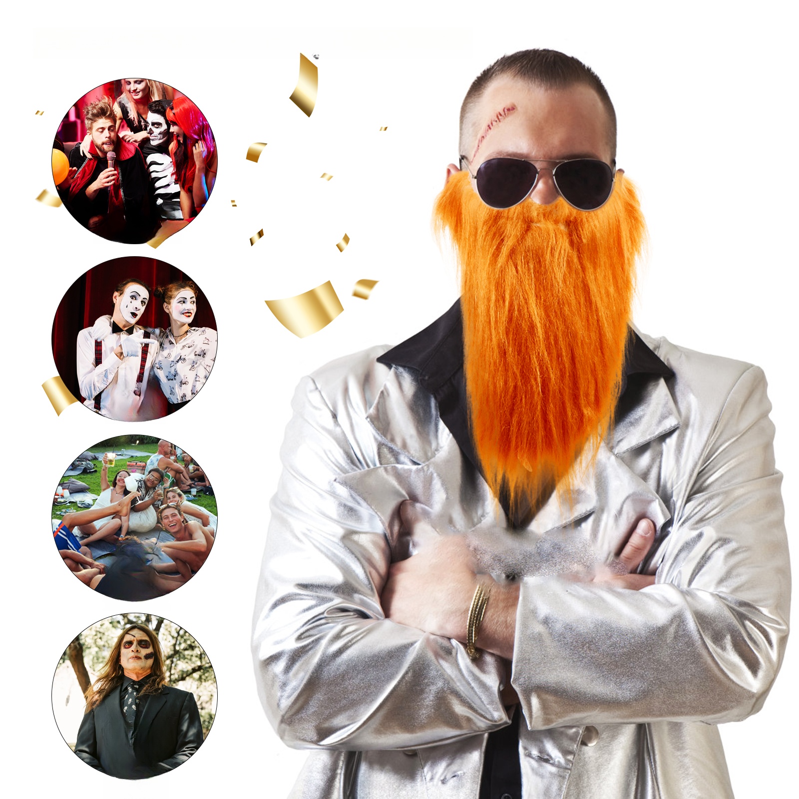 ✅ Штучна борода зручна і практична, має відмінну текстуру і може служити вам довго, не пошкоджуючись. Витончена майстерність може служити вам добре, не зламаючись легко. Підходить для тематичних вечірок на Хелловін і карнавал, тематичних заходів, маскарадів, днів народжень, костюмованих вечірок та інших веселих заходів.