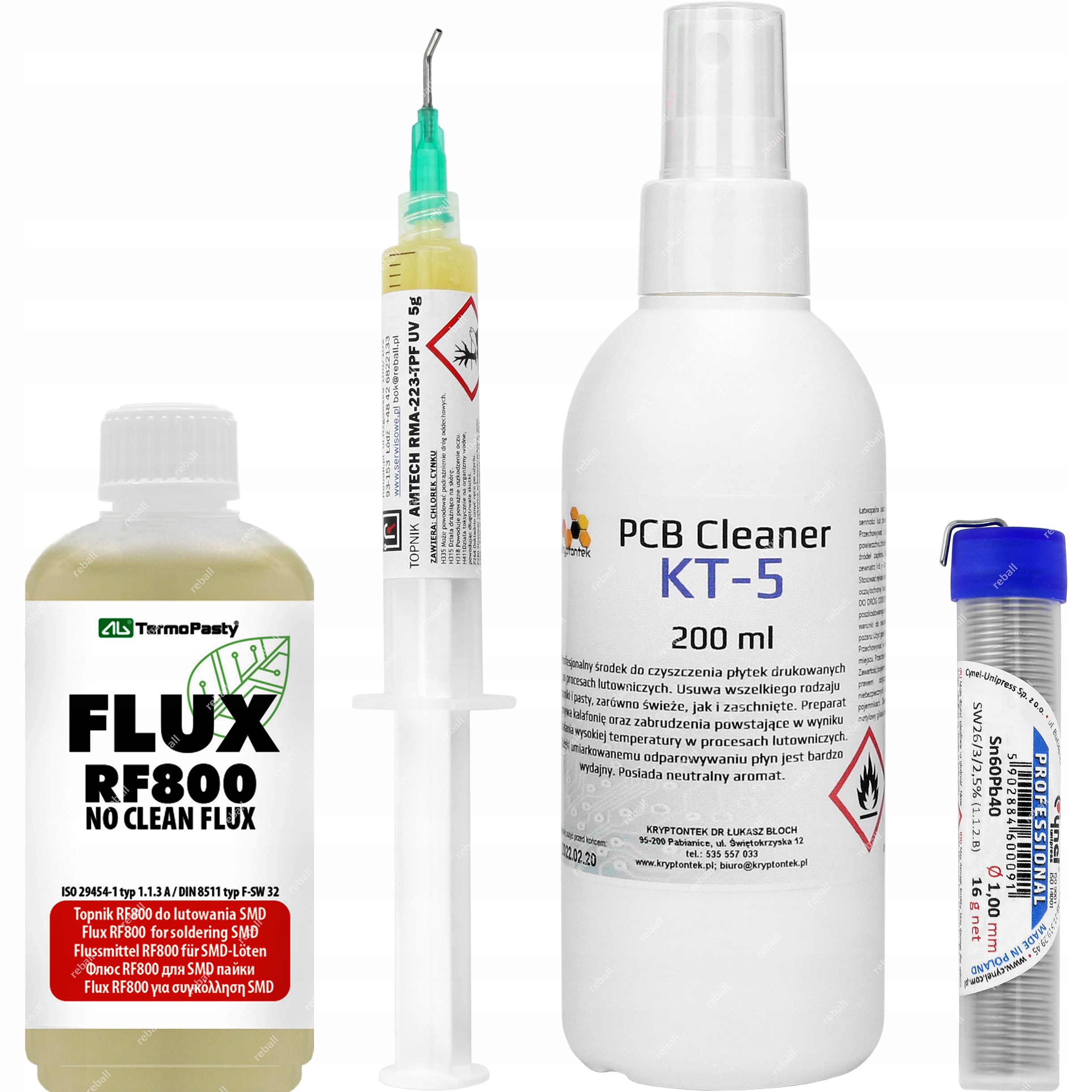 Для очищення залишків можна використовувати рідини типу ізопропанолу та спеціальні рідини, такі як KT-5 і KT-6.