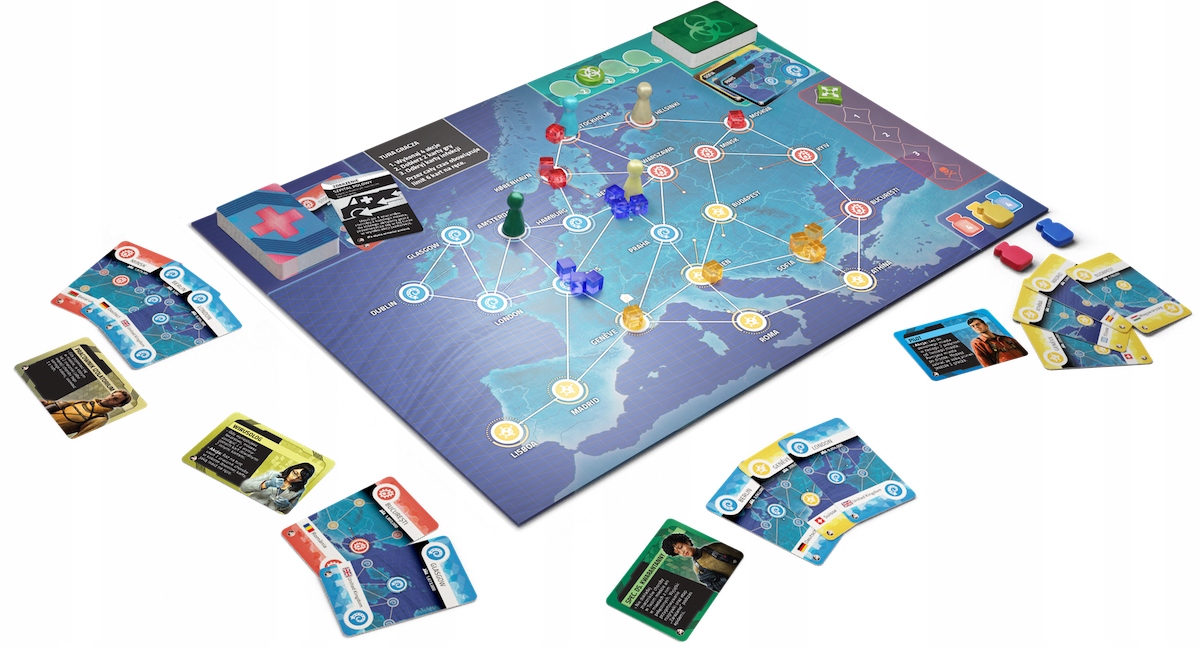 Щоб перемогти, ми повинні знайти ліки від 3 хвороб, які загрожують Європі. Для цього ми будемо збирати набори карт відповідної масті і передавати їх один одному. Крім того, ми повинні уважно стежити за ситуацією на дошці і швидко реагувати на появу нових спалахів захворювань, запобігаючи їх поширенню.