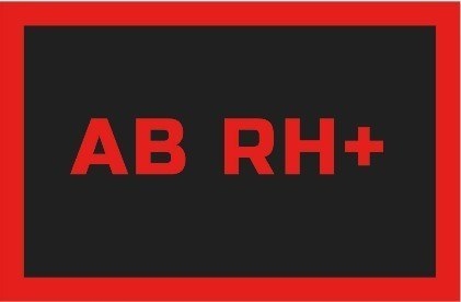 REBELHORN БЕЙДЖ НА ЛИПУЧЦІ ГРУПА КРОВІ AB RH+ ЧОРНИЙ/ЧЕРВОНИЙ 50X80MM