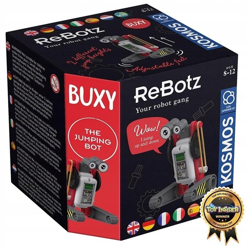 Дивовижно, як цей маленький робот дико стрибає по кімнаті і дивує всіх своїми трюками бравадо! Оснащений еластичним та двигуном, дикі букси не зупиняються! Діти віком від 8 до 12 років швидко з'єднують окремі частини, кладуть двигун і розміщують акумулятори в камеру - яскраві інструкції пропонують, як це зробити. Можливі кумедні експерименти з різними висотами ходу! Але стає ще веселіше, коли частини стрибкового робота замінюються частинами його трьох друзів! Банда роботів від Космоса - 4 боти з наркоманів, які вдихають нове життя в старі частини, з яких вони зроблені. З крутими наклейками, які роблять Rebotz виглядати ще більш мудрим! Зміст: коморт-компонент двигуна, частина робота, кольорові наклейки, інструкції також потрібні: 3 1,5 В батареї LR03 (AAA, Mikro)