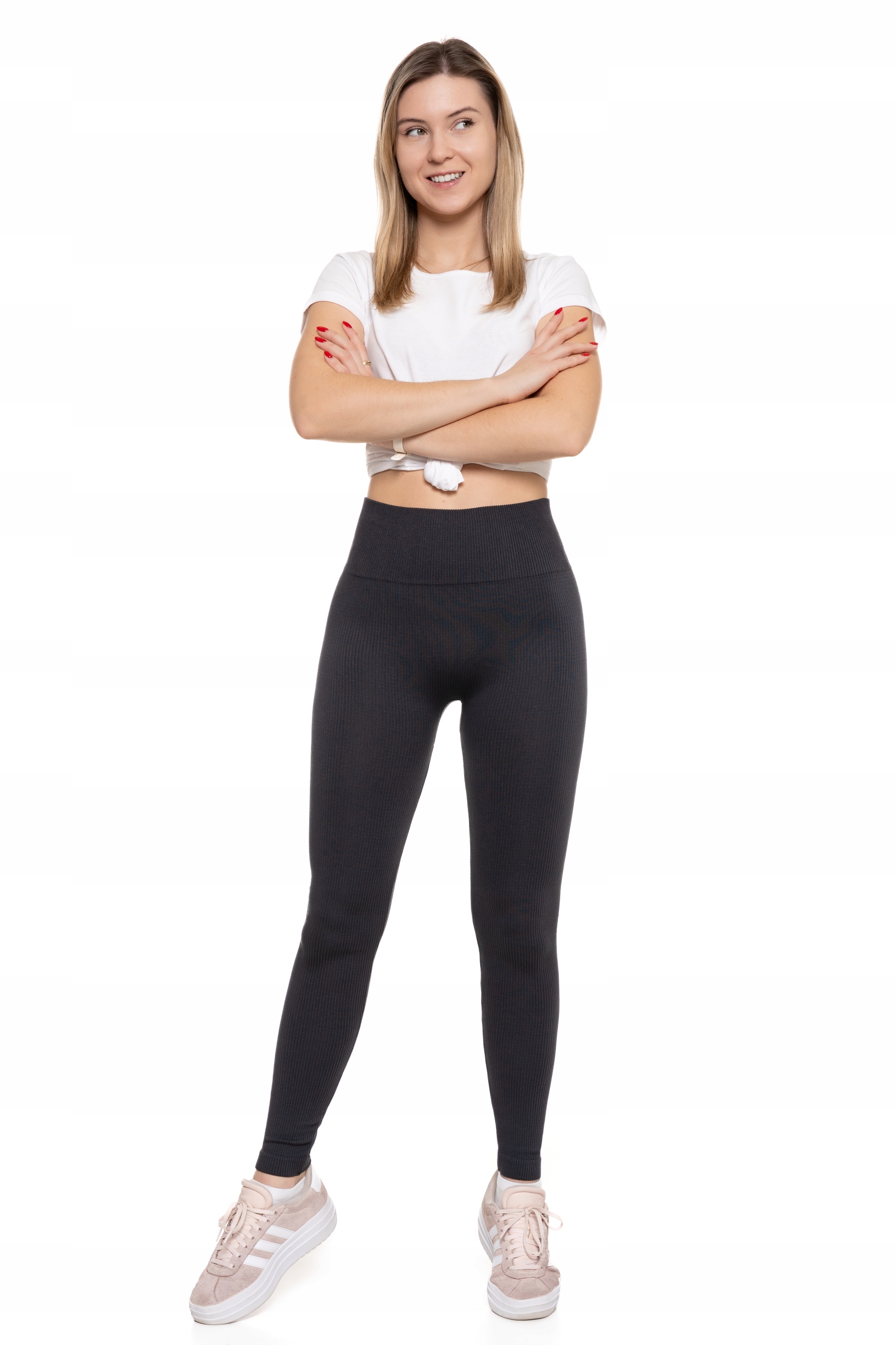 Високо -Wasted жіночі ребристі гетри - відмінний вибір для кожної жінки, яка цінує як модний вигляд, так і комфорт носіння. Ці гетри - це суть сучасної моди та функціональності. Це означає, що ви можете носити їх з короткими вершинами, довгими светками або сорочками, а високий стан завжди буде виглядати елегантним. Завдяки ребристим гетрам ваші ноги здаються довшими та стрункішими. Завдяки цьому ви можете носити їх як у тренажерному залі, під час йоги та кожного дня. . Не потрібно турбуватися про те, щоб залишити легінси.