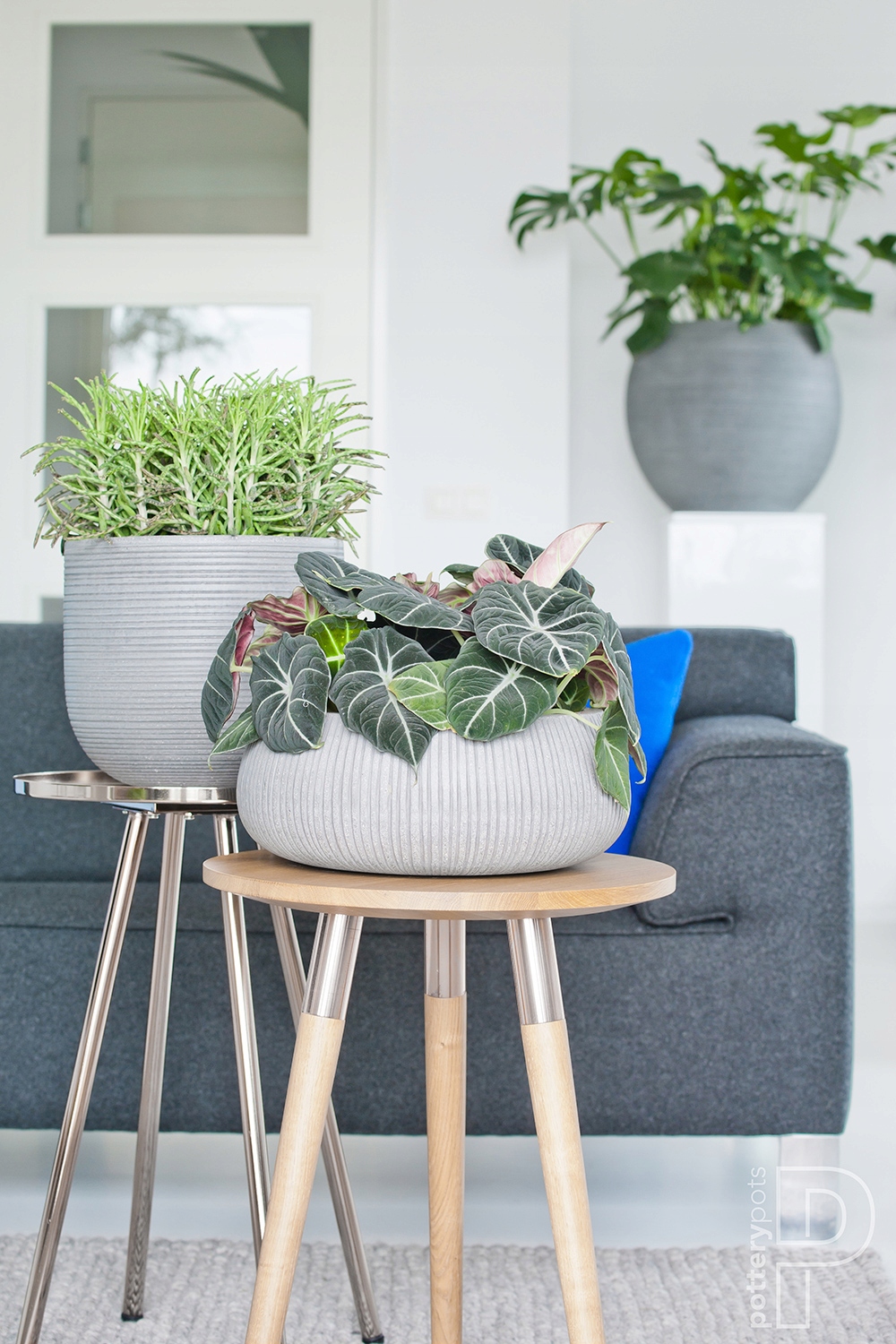 Це серія квіткових горщиків з колекції RIDGED. Вони виготовлені зі скловолокна, змішаного з цементом, піском і дрібно подрібненим каменем.