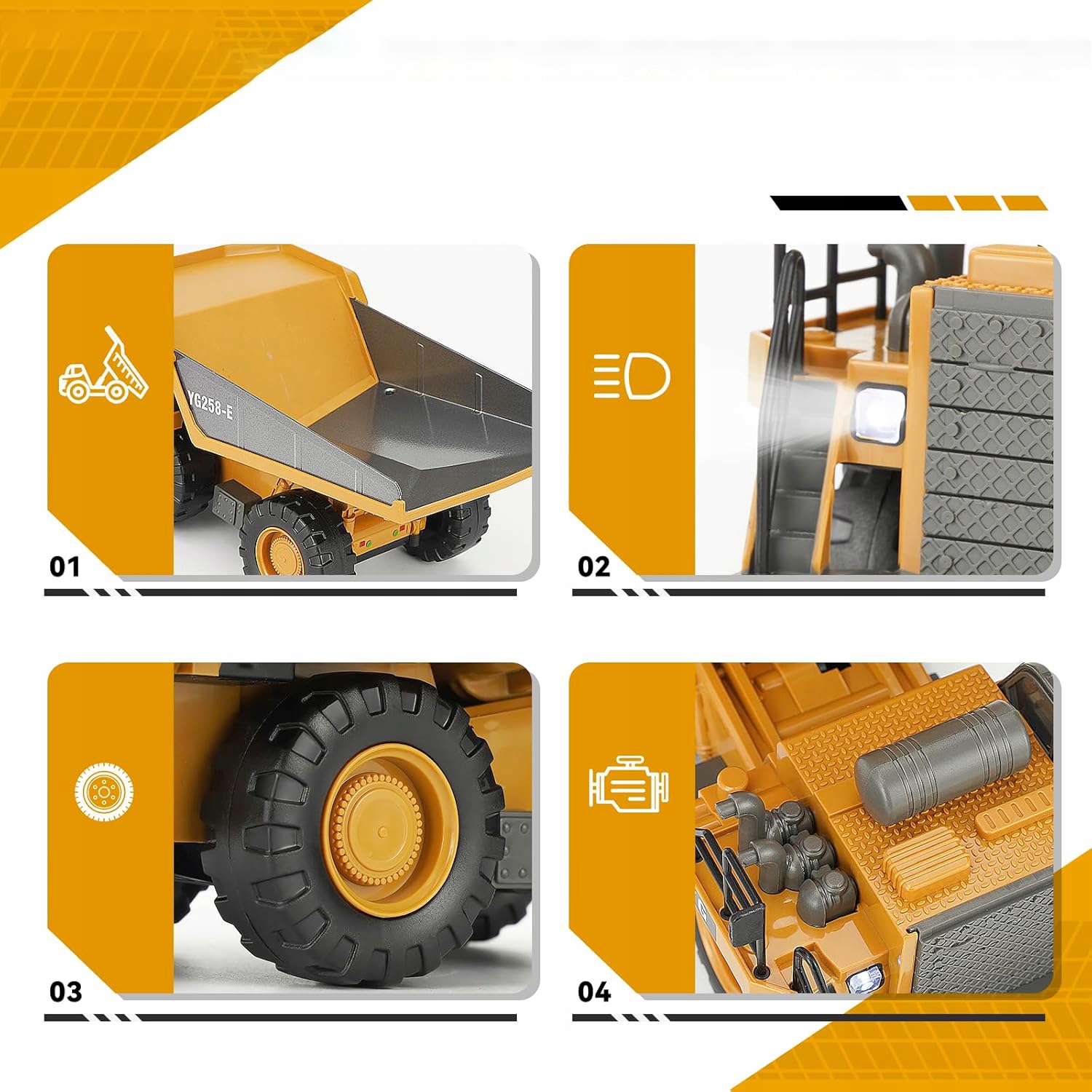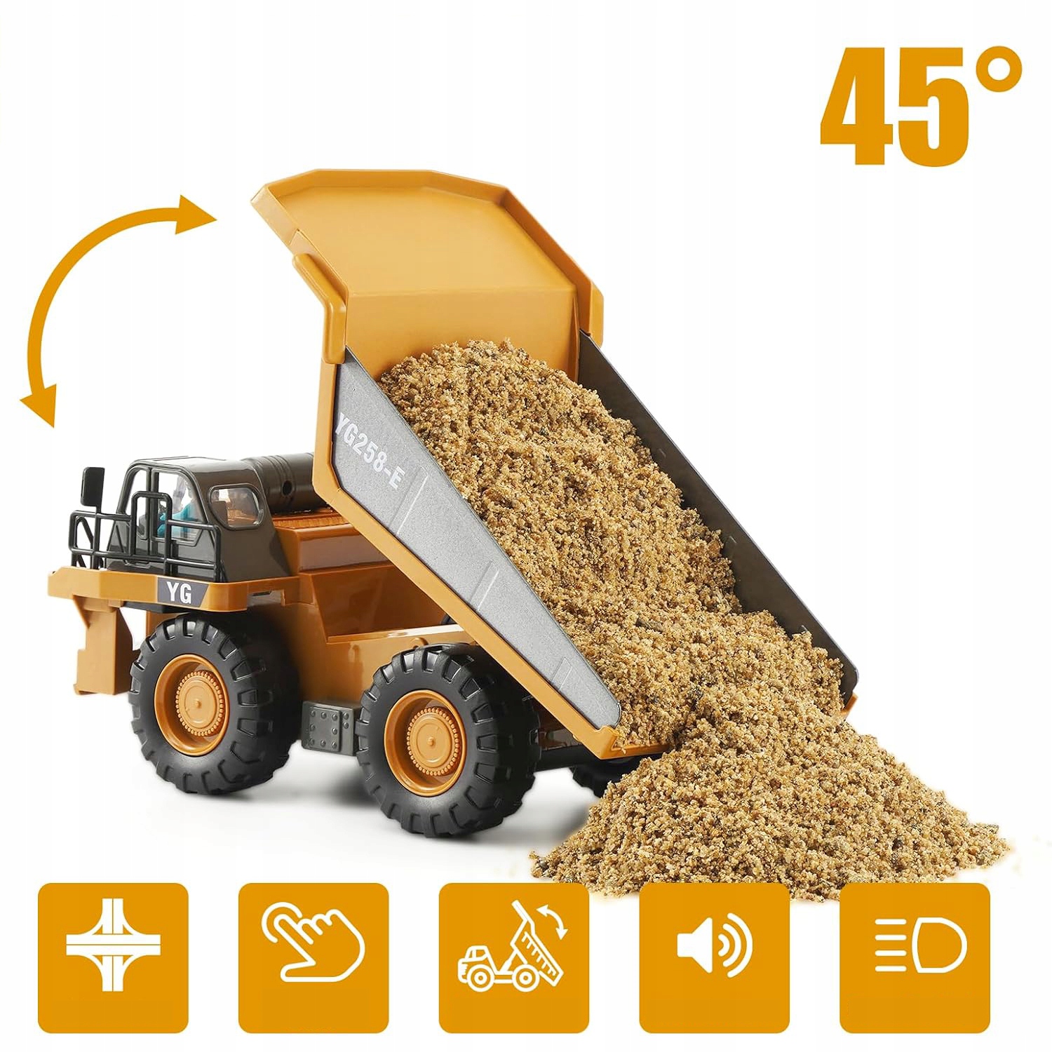 - Завдяки вбудованому 9-канальному інфрачервоному бездротовому пульту дистанційного керування 2,4 ГГц ви можете легко керувати цією іграшковою вантажівкою, щоб рухатися вперед, повертати ліворуч, підбирати та розвантажувати та більше.